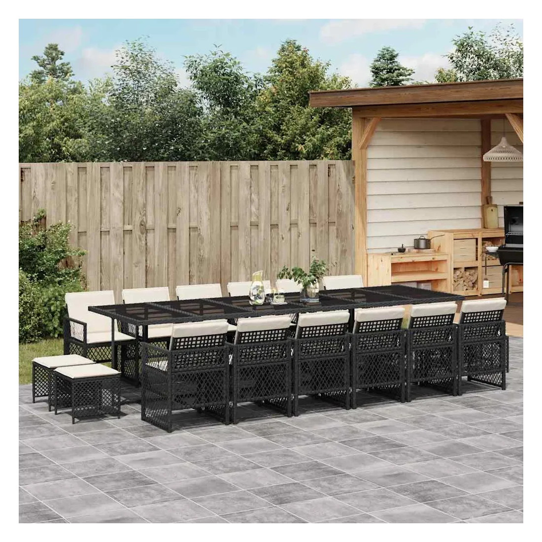 Cet ensemble de salle à manger de jardin est un excellent choix pour les repas en plein air ou pour vous détendre dans le jardin, l'arrière-cour ou le patio. Matériau durable : la résine tressée, également connue sous le nom de poly rotin, est un matériau synthétique solide et nécessitant peu d'entretien qui ressemble au rotin naturel. Elle est légère, facile à nettoyer et couramment utilisée pour les meubles d'extérieur en raison de sa durabilité et de ses propriétés de résistance aux intempéries. Dessus en verre : le dessus de la table d'extérieur est fabriqué en verre trempé solide et durable, ce qui le rend facile à nettoyer avec un chiffon humide et ajoute une touche d'élégance à votre espace extérieur. Rangement compact : ces chaises sont dotées d'un dossier rabattable, ce qui permet de les ranger facilement sous la table. Une fois pliées, elles se rangent parfaitement sous la table, formant un cube peu encombrant. De plus, les tabourets peuvent également être rangés sous les chaises, maximisant encore davantage l'efficacité de l'espace. Expérience d'assise confortable : ce mobilier d'extérieur, doté de coussins épais, offre une expérience d'assise confortable. Housse amovible et lavable : ces coussins de siège sont dotés de housses amovibles pour un lavage et un entretien faciles. Les housses de coussin de chaise ont un rabat à l'arrière pour une fixation facile aux chaises. Bon à savoir :Pour que vos meubles d'extérieur restent beaux, nous vous recommandons de les protéger avec une housse imperméable.