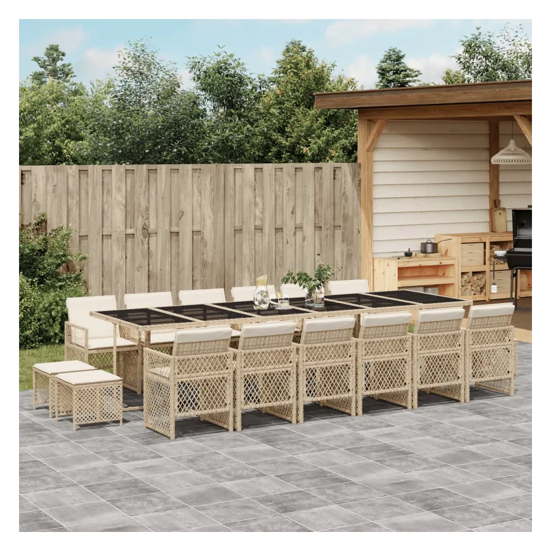 Cet ensemble de salle à manger de jardin est un excellent choix pour les repas en plein air ou pour vous détendre dans le jardin, l'arrière-cour ou le patio. Matériau durable : la résine tressée, également connue sous le nom de poly rotin, est un matériau synthétique solide et nécessitant peu d'entretien qui ressemble au rotin naturel. Elle est légère, facile à nettoyer et couramment utilisée pour les meubles d'extérieur en raison de sa durabilité et de ses propriétés de résistance aux intempéries. Dessus en verre : le dessus de la table d'extérieur est fabriqué en verre trempé solide et durable, ce qui le rend facile à nettoyer avec un chiffon humide et ajoute une touche d'élégance à votre espace extérieur. Rangement compact : ces chaises sont dotées d'un dossier rabattable, ce qui permet de les ranger facilement sous la table. Une fois pliées, elles se rangent parfaitement sous la table, formant un cube peu encombrant. De plus, les tabourets peuvent également être rangés sous les chaises, maximisant encore davantage l'efficacité de l'espace. Expérience d'assise confortable : ce mobilier d'extérieur, doté de coussins épais, offre une expérience d'assise confortable. Housse amovible et lavable : ces coussins de siège sont dotés de housses amovibles pour un lavage et un entretien faciles. Les housses de coussin de chaise ont un rabat à l'arrière pour une fixation facile aux chaises. Bon à savoir :Pour que vos meubles d'extérieur restent beaux, nous vous recommandons de les protéger avec une housse imperméable.
