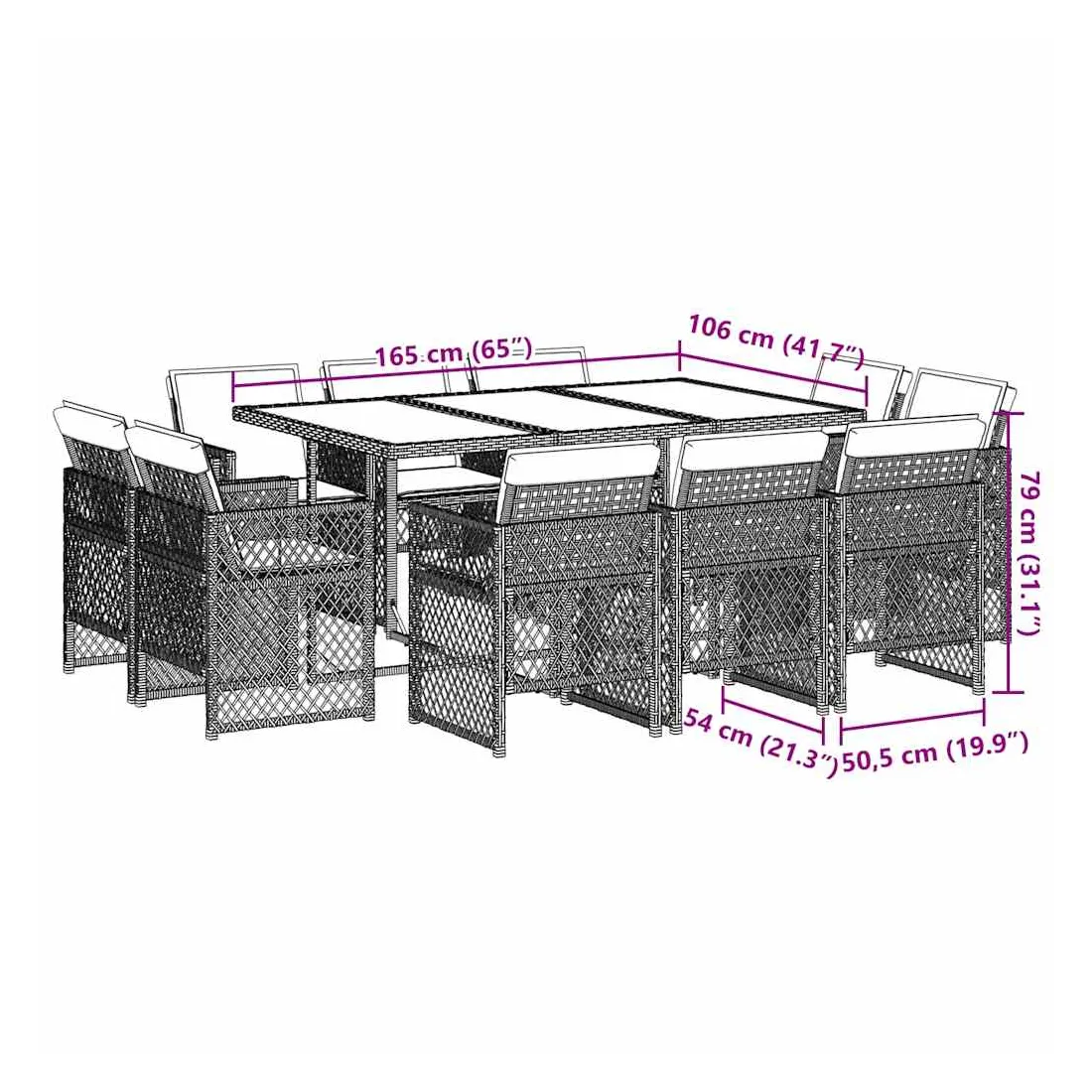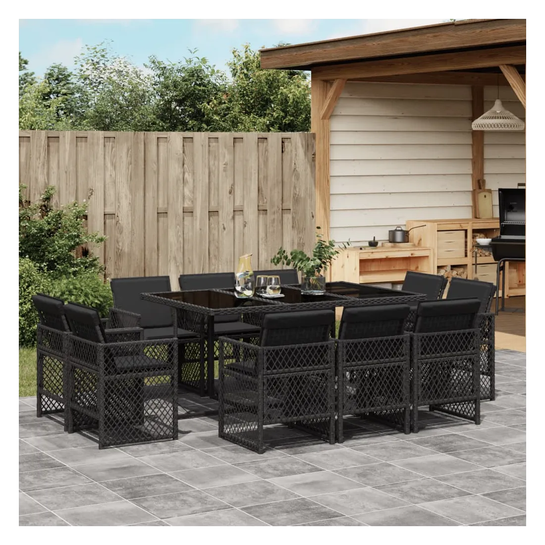 Cet ensemble de salle à manger de jardin est un excellent choix pour les repas en plein air ou pour vous détendre dans le jardin, dans l'arrière-cour ou sur la terrasse. Matériau durable : la résine tressée, également connue sous le nom de poly rotin, est un matériau synthétique solide et nécessitant peu d'entretien qui ressemble au rotin naturel. Elle est légère, facile à nettoyer et couramment utilisée pour les meubles d'extérieur en raison de sa durabilité et de ses propriétés de résistance aux intempéries.Rangement compact : ces chaises sont dotées d'un dossier à rabat qui peut être rabattu pour un rangement compact.Expérience d'assise confortable : ce mobilier d'extérieur, doté de coussins épais, offre une expérience d'assise confortable.Housse amovible et lavable : ces coussins de siège sont dotés de housses amovibles pour un lavage et un entretien faciles. Les housses de coussin de chaise ont un rabat à l'arrière pour une fixation facile aux chaises.Dessus stable et facile à nettoyer : cette table de jardin est dotée d'un dessus en verre trempé robuste, durable et facile à nettoyer à l'aide d'un chiffon humide. Bon à savoir : Pour que vos meubles d'extérieur restent beaux, nous vous recommandons de les protéger avec une housse imperméable.