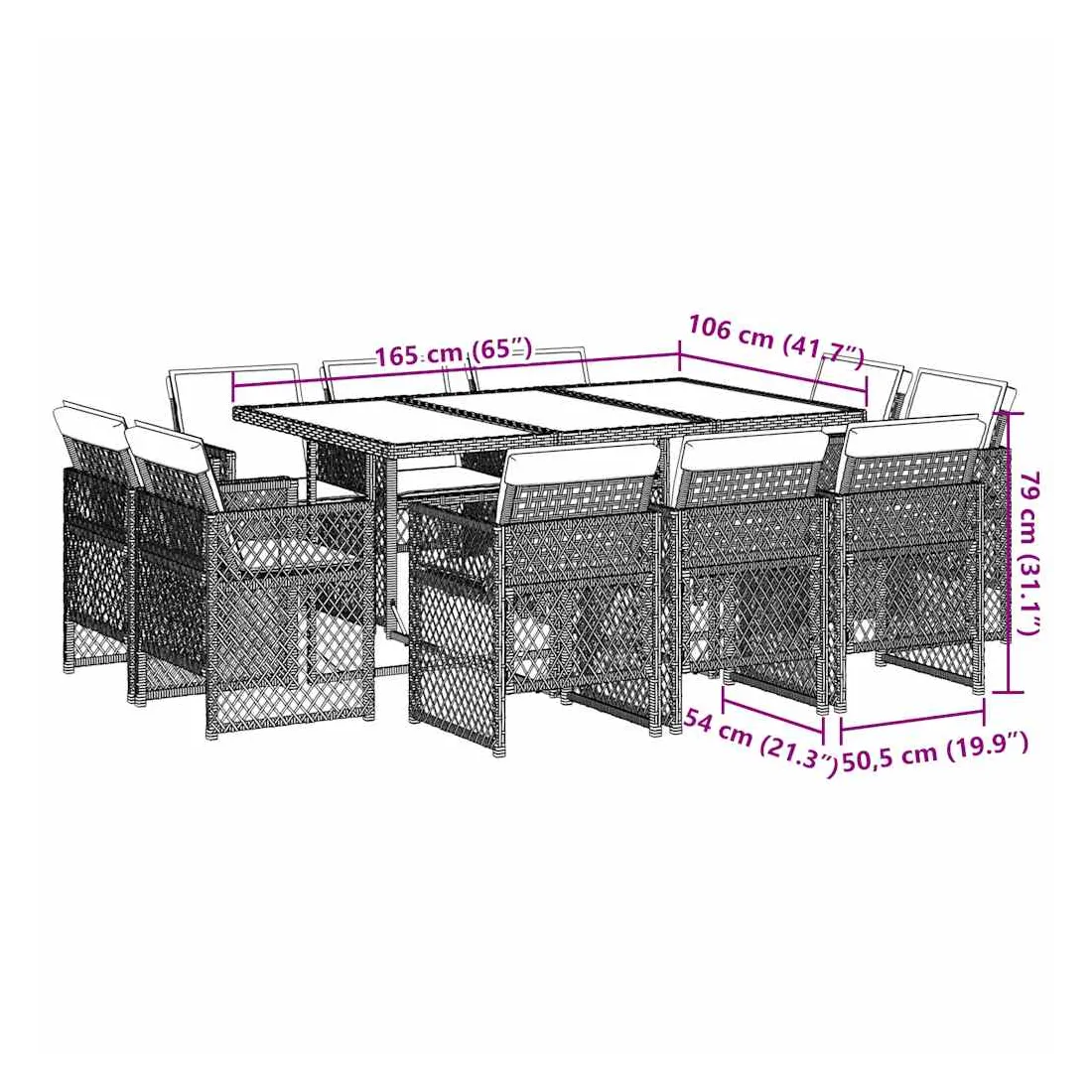 Cet ensemble de salle à manger de jardin est un excellent choix pour les repas en plein air ou pour vous détendre dans le jardin, dans l'arrière-cour ou sur la terrasse. Matériau durable : la résine tressée, également connue sous le nom de poly rotin, est un matériau synthétique solide et nécessitant peu d'entretien qui ressemble au rotin naturel. Elle est légère, facile à nettoyer et couramment utilisée pour les meubles d'extérieur en raison de sa durabilité et de ses propriétés de résistance aux intempéries.Rangement compact : ces chaises sont dotées d'un dossier à rabat qui peut être rabattu pour un rangement compact.Expérience d'assise confortable : ce mobilier d'extérieur, doté de coussins épais, offre une expérience d'assise confortable.Housse amovible et lavable : ces coussins de siège sont dotés de housses amovibles pour un lavage et un entretien faciles. Les housses de coussin de chaise ont un rabat à l'arrière pour une fixation facile aux chaises.Dessus stable et facile à nettoyer : cette table de jardin a un dessus en bois d'acacia robuste, durable et facile à nettoyer avec un chiffon humide. Bon à savoir : Pour que vos meubles d'extérieur restent beaux, nous vous recommandons de les protéger avec une housse imperméable.