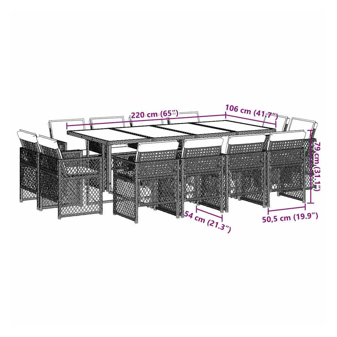 - Dimensions : 220 x 106 x 73 cm (L x l x H)