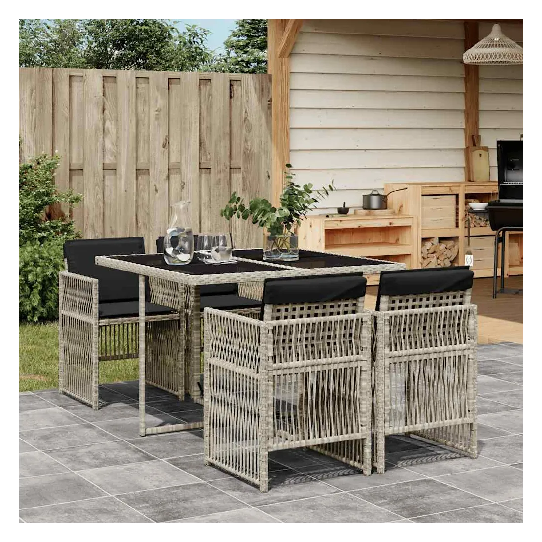 Cet ensemble de salle à manger de jardin est un excellent choix pour les repas en plein air ou pour vous détendre dans le jardin, dans l'arrière-cour ou sur la terrasse. Matériau durable : la résine tressée, également connue sous le nom de poly rotin, est un matériau synthétique solide et nécessitant peu d'entretien qui ressemble au rotin naturel. Il est léger, facile à nettoyer et couramment utilisé pour les meubles d'extérieur en raison de sa durabilité et de ses propriétés de résistance aux intempéries.Rangement compact : ces chaises sont dotées d'un dossier rabattable, ce qui permet de les ranger facilement sous la table. Une fois pliées, elles se rangent parfaitement sous la table, formant un cube peu encombrant.Expérience d'assise confortable : ce mobilier d'extérieur, doté de coussins épais, offre une expérience d'assise confortable.Housse amovible et lavable : ces coussins sont dotés de housses amovibles pour un lavage et un entretien faciles. Les housses de coussin ont un rabat à l'arrière pour une fixation facile aux dossiers.Dessus en verre : le dessus de la table d'extérieur est fabriqué en verre trempé solide et durable, ce qui le rend facile à nettoyer avec un chiffon humide et ajoute une touche d'élégance à votre espace extérieur. Bon à savoir : Pour que vos meubles d'extérieur restent beaux, nous vous recommandons de les protéger avec une housse imperméable.