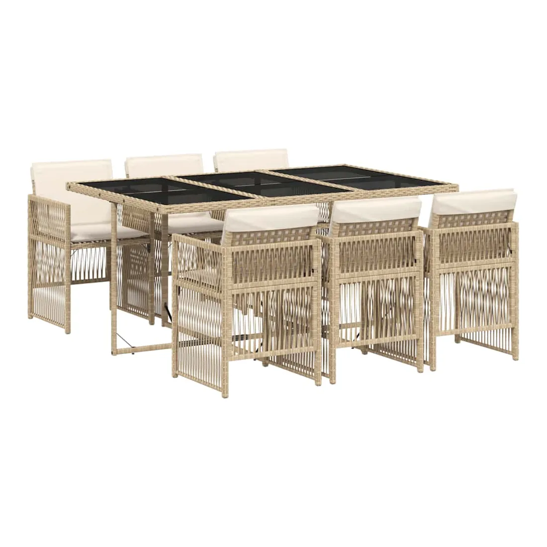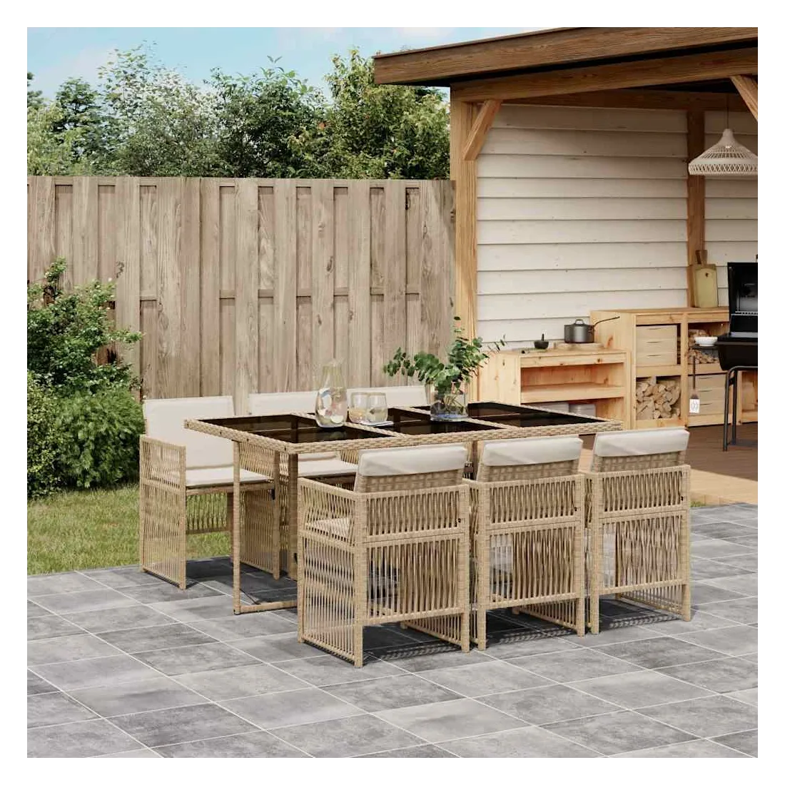 Cet ensemble de salle à manger de jardin est un excellent choix pour les repas en plein air ou pour vous détendre dans le jardin, dans l'arrière-cour ou sur la terrasse. Matériau durable : la résine tressée, également connue sous le nom de poly rotin, est un matériau synthétique solide et nécessitant peu d'entretien qui ressemble au rotin naturel. Il est léger, facile à nettoyer et couramment utilisé pour les meubles d'extérieur en raison de sa durabilité et de ses propriétés de résistance aux intempéries.Rangement compact : ces chaises sont dotées d'un dossier rabattable, ce qui permet de les ranger facilement sous la table. Une fois pliées, elles se rangent parfaitement sous la table, formant un cube peu encombrant.Expérience d'assise confortable : ce mobilier d'extérieur, doté de coussins épais, offre une expérience d'assise confortable.Housse amovible et lavable : ces coussins sont dotés de housses amovibles pour un lavage et un entretien faciles. Les housses de coussin ont un rabat à l'arrière pour une fixation facile aux dossiers.Dessus en verre : le dessus de la table d'extérieur est fabriqué en verre trempé solide et durable, ce qui le rend facile à nettoyer avec un chiffon humide et ajoute une touche d'élégance à votre espace extérieur. Bon à savoir : Pour que vos meubles d'extérieur restent beaux, nous vous recommandons de les protéger avec une housse imperméable.