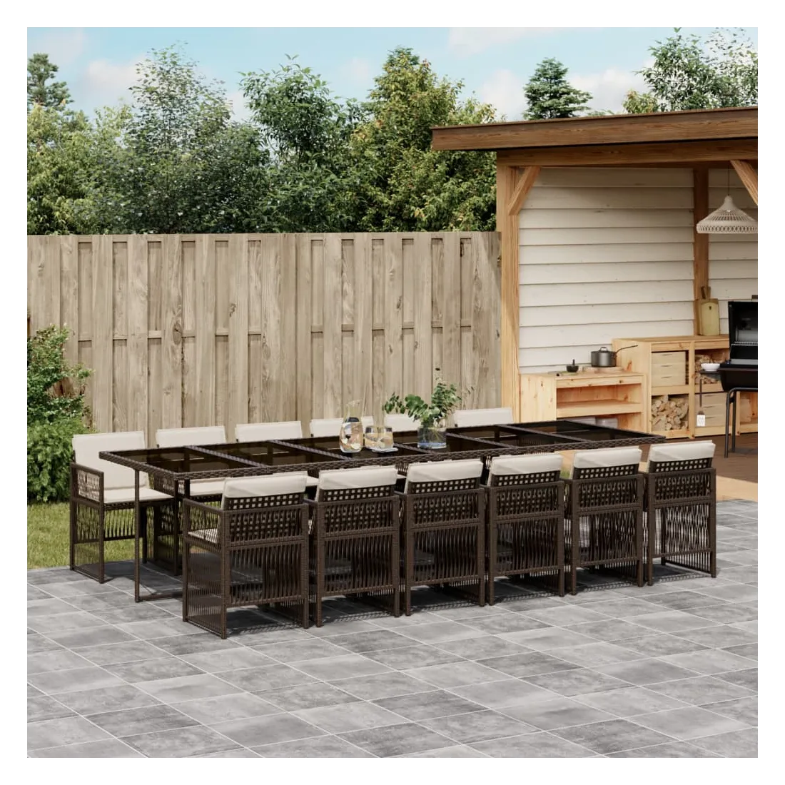 Cet ensemble de salle à manger de jardin est un excellent choix pour les repas en plein air ou pour vous détendre dans le jardin, dans l'arrière-cour ou sur la terrasse. Matériau durable : la résine tressée, également connue sous le nom de poly rotin, est un matériau synthétique solide et nécessitant peu d'entretien qui ressemble au rotin naturel. Il est léger, facile à nettoyer et couramment utilisé pour les meubles d'extérieur en raison de sa durabilité et de ses propriétés de résistance aux intempéries.Rangement compact : ces chaises sont dotées d'un dossier rabattable, ce qui permet de les ranger facilement sous la table. Une fois pliées, elles se rangent parfaitement sous la table, formant un cube peu encombrant.Expérience d'assise confortable : ce mobilier d'extérieur, doté de coussins épais, offre une expérience d'assise confortable.Housse amovible et lavable : ces coussins sont dotés de housses amovibles pour un lavage et un entretien faciles. Les housses de coussin ont un rabat à l'arrière pour une fixation facile aux dossiers.Dessus en verre : le dessus de la table d'extérieur est fabriqué en verre trempé solide et durable, ce qui le rend facile à nettoyer avec un chiffon humide et ajoute une touche d'élégance à votre espace extérieur. Bon à savoir : Pour que vos meubles d'extérieur restent beaux, nous vous recommandons de les protéger avec une housse imperméable.