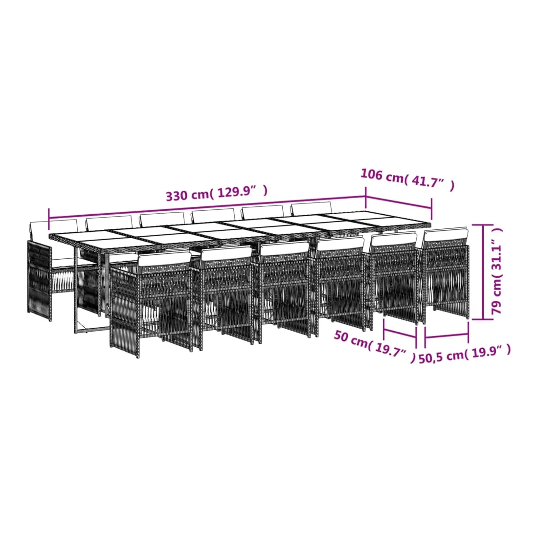 - Dimensions : 330 x 106 x 73 cm (L x l x H)