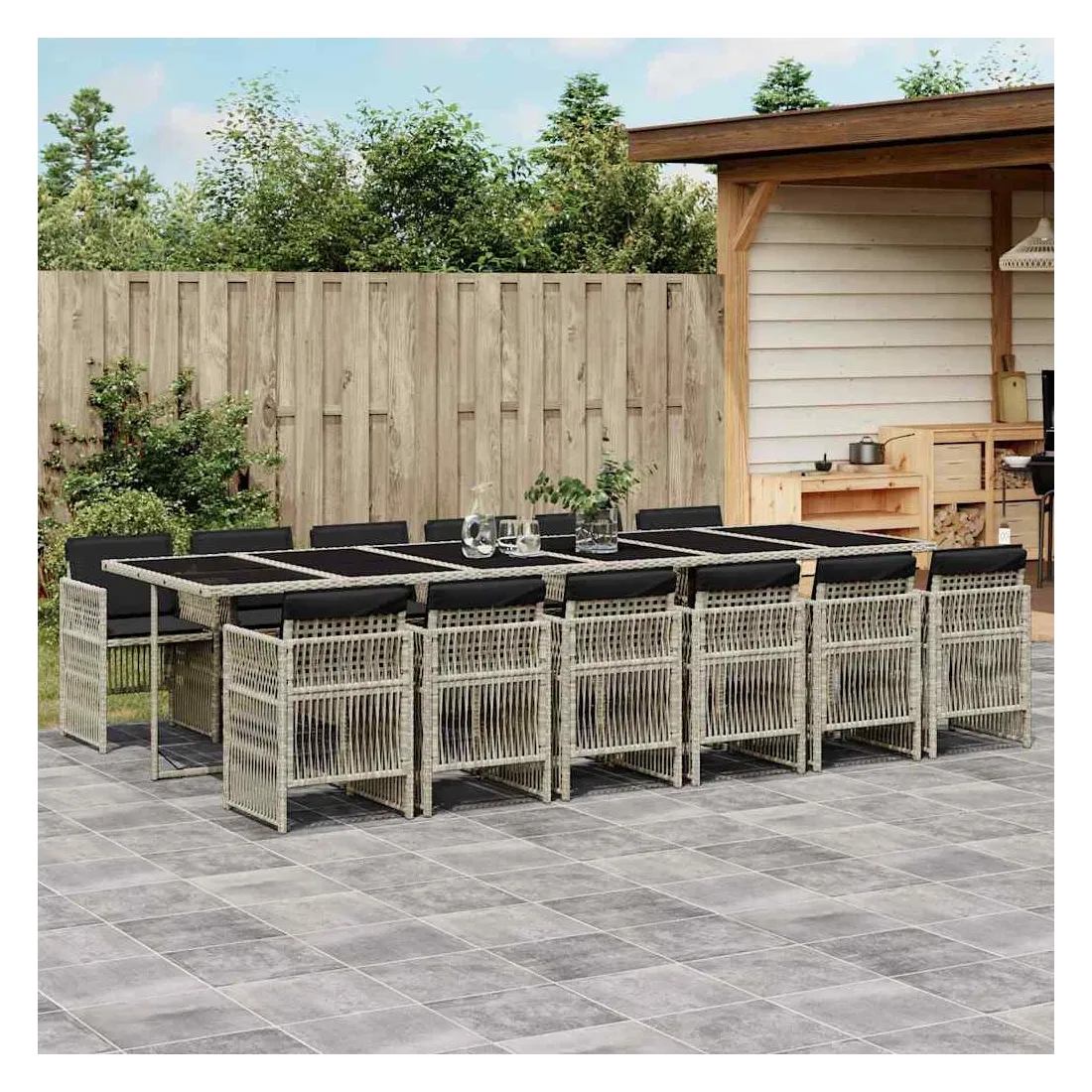 Cet ensemble de salle à manger de jardin est un excellent choix pour les repas en plein air ou pour vous détendre dans le jardin, dans l'arrière-cour ou sur la terrasse. Matériau durable : la résine tressée, également connue sous le nom de poly rotin, est un matériau synthétique solide et nécessitant peu d'entretien qui ressemble au rotin naturel. Il est léger, facile à nettoyer et couramment utilisé pour les meubles d'extérieur en raison de sa durabilité et de ses propriétés de résistance aux intempéries.Rangement compact : ces chaises sont dotées d'un dossier rabattable, ce qui permet de les ranger facilement sous la table. Une fois pliées, elles se rangent parfaitement sous la table, formant un cube peu encombrant.Expérience d'assise confortable : ce mobilier d'extérieur, doté de coussins épais, offre une expérience d'assise confortable.Housse amovible et lavable : ces coussins sont dotés de housses amovibles pour un lavage et un entretien faciles. Les housses de coussin ont un rabat à l'arrière pour une fixation facile aux dossiers.Dessus en verre : le dessus de la table d'extérieur est fabriqué en verre trempé solide et durable, ce qui le rend facile à nettoyer avec un chiffon humide et ajoute une touche d'élégance à votre espace extérieur. Bon à savoir : Pour que vos meubles d'extérieur restent beaux, nous vous recommandons de les protéger avec une housse imperméable.