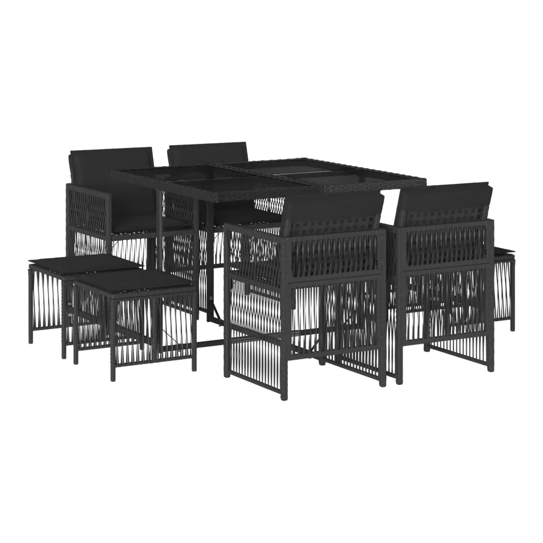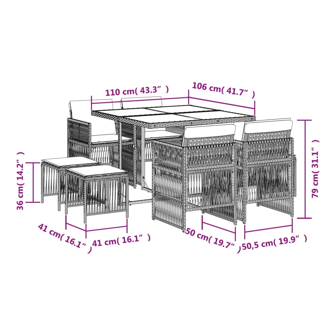 Cet ensemble de salle à manger de jardin est un excellent choix pour les repas en plein air ou pour vous détendre dans le jardin, dans l'arrière-cour ou sur la terrasse. Matériau durable : la résine tressée, également connue sous le nom de poly rotin, est un matériau synthétique solide et nécessitant peu d'entretien qui ressemble au rotin naturel. Il est léger, facile à nettoyer et couramment utilisé pour les meubles d'extérieur en raison de sa durabilité et de ses propriétés de résistance aux intempéries.Rangement compact : ces chaises sont dotées d'un dossier rabattable, ce qui permet de les ranger facilement sous la table. Une fois pliées, elles se rangent parfaitement sous la table, formant un cube peu encombrant. De plus, les tabourets peuvent également être rangés sous les chaises, maximisant encore davantage l'efficacité de l'espace.Expérience d'assise confortable : ce mobilier d'extérieur, doté de coussins épais, offre une expérience d'assise confortable.Housse amovible et lavable : ces coussins sont dotés de housses amovibles pour un lavage et un entretien faciles. Les housses de coussin ont un rabat à l'arrière pour une fixation facile aux dossiers.Dessus en verre : le dessus de la table d'extérieur est fabriqué en verre trempé solide et durable, ce qui le rend facile à nettoyer avec un chiffon humide et ajoute une touche d'élégance à votre espace extérieur. Bon à savoir : Pour que vos meubles d'extérieur restent beaux, nous vous recommandons de les protéger avec une housse imperméable.
