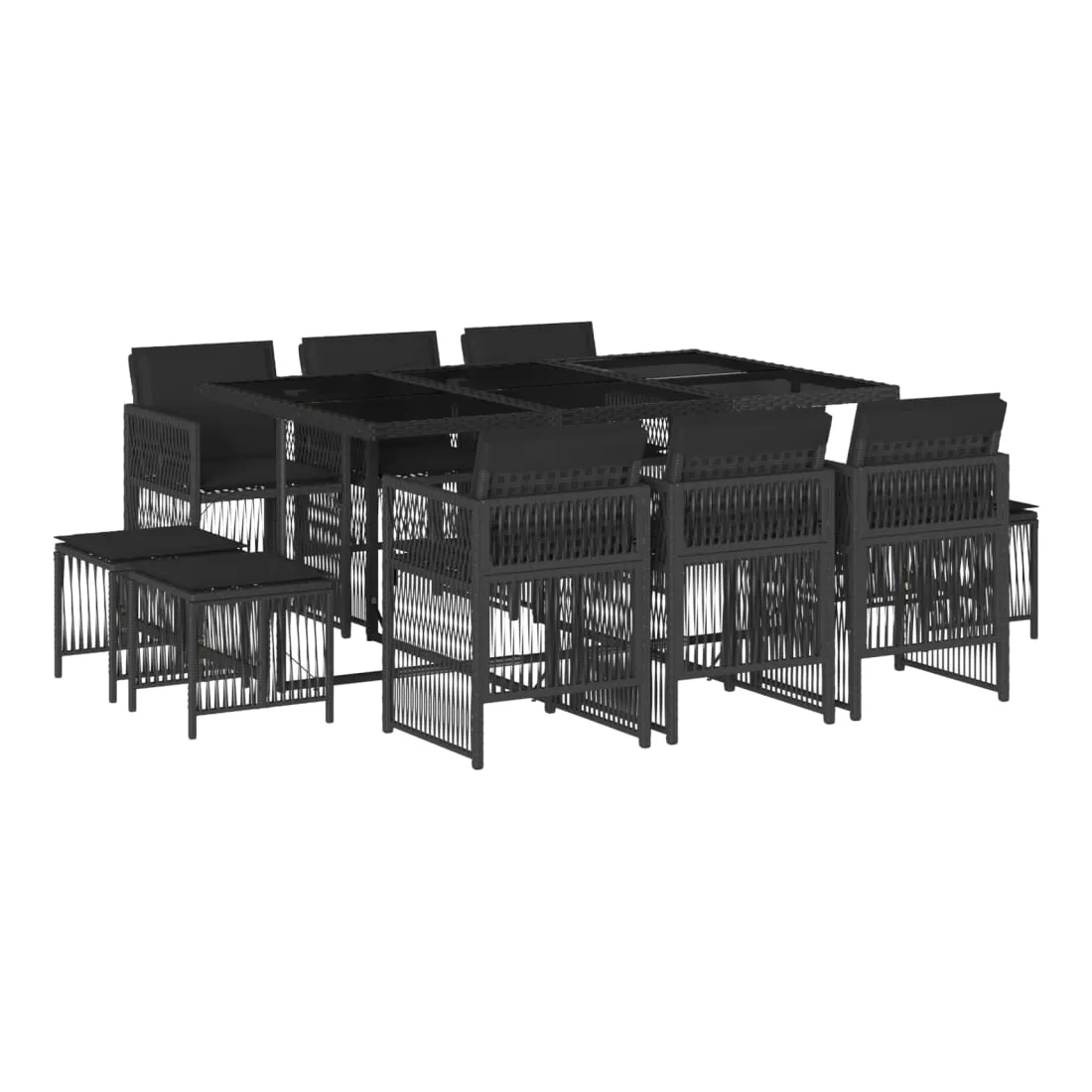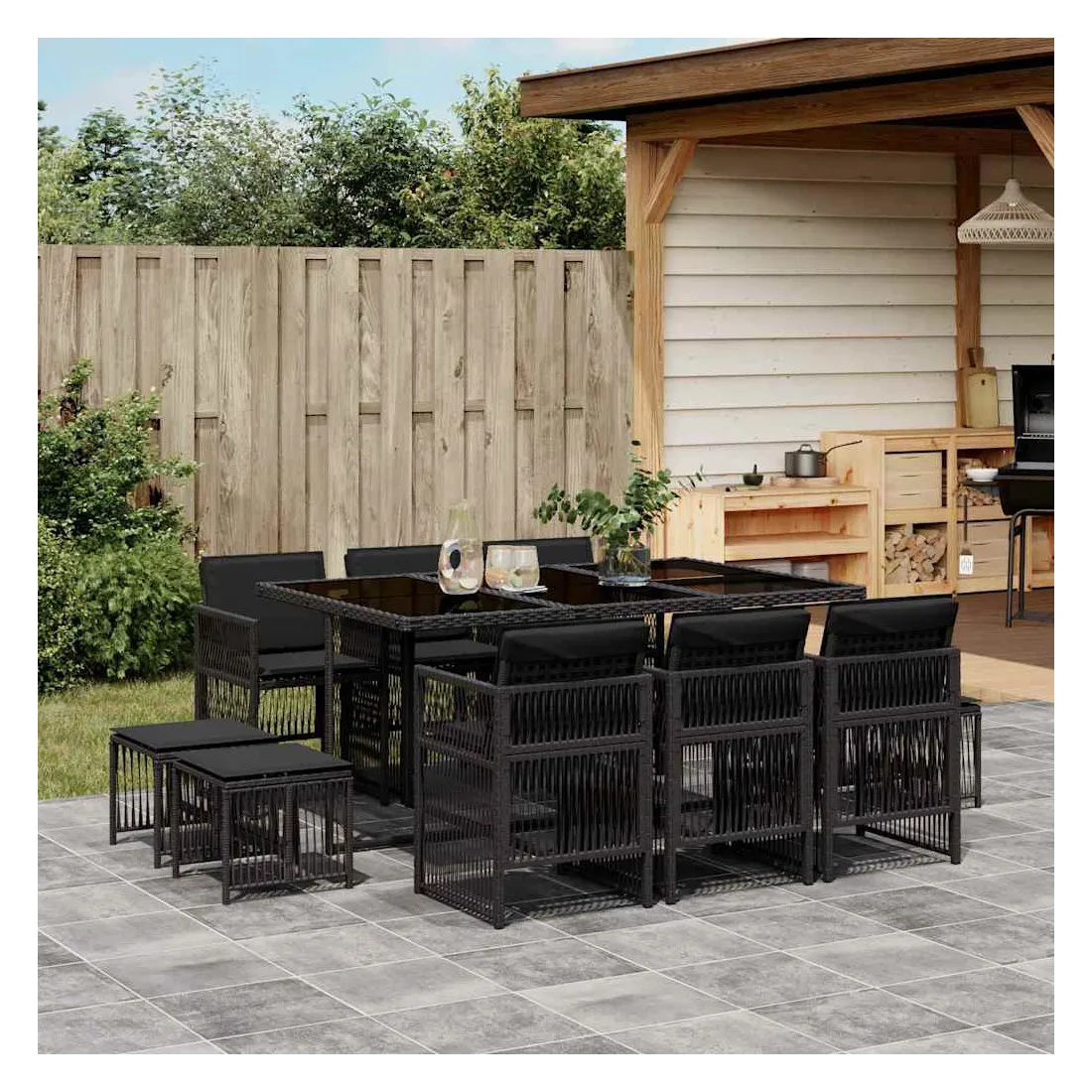 Cet ensemble de salle à manger de jardin est un excellent choix pour les repas en plein air ou pour vous détendre dans le jardin, dans l'arrière-cour ou sur la terrasse. Matériau durable : la résine tressée, également connue sous le nom de poly rotin, est un matériau synthétique solide et nécessitant peu d'entretien qui ressemble au rotin naturel. Il est léger, facile à nettoyer et couramment utilisé pour les meubles d'extérieur en raison de sa durabilité et de ses propriétés de résistance aux intempéries.Rangement compact : ces chaises sont dotées d'un dossier rabattable, ce qui permet de les ranger facilement sous la table. Une fois pliées, elles se rangent parfaitement sous la table, formant un cube peu encombrant. De plus, les tabourets peuvent également être rangés sous les chaises, maximisant encore davantage l'efficacité de l'espace.Expérience d'assise confortable : ce mobilier d'extérieur, doté de coussins épais, offre une expérience d'assise confortable.Housse amovible et lavable : ces coussins sont dotés de housses amovibles pour un lavage et un entretien faciles. Les housses de coussin ont un rabat à l'arrière pour une fixation facile aux dossiers.Dessus en verre : le dessus de la table d'extérieur est fabriqué en verre trempé solide et durable, ce qui le rend facile à nettoyer avec un chiffon humide et ajoute une touche d'élégance à votre espace extérieur. Bon à savoir : Pour que vos meubles d'extérieur restent beaux, nous vous recommandons de les protéger avec une housse imperméable.
