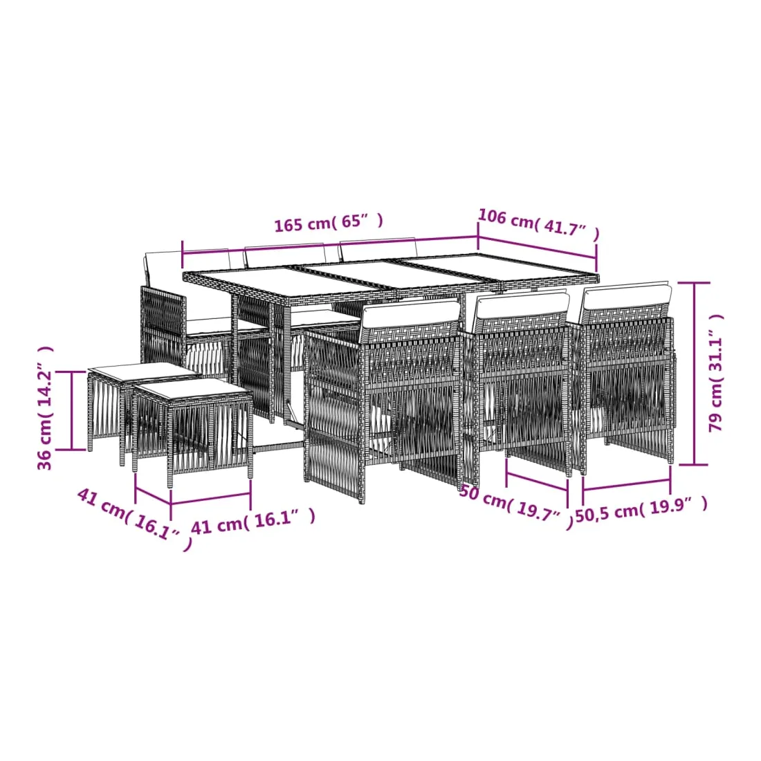 Cet ensemble de salle à manger de jardin est un excellent choix pour les repas en plein air ou pour vous détendre dans le jardin, dans l'arrière-cour ou sur la terrasse. Matériau durable : la résine tressée, également connue sous le nom de poly rotin, est un matériau synthétique solide et nécessitant peu d'entretien qui ressemble au rotin naturel. Il est léger, facile à nettoyer et couramment utilisé pour les meubles d'extérieur en raison de sa durabilité et de ses propriétés de résistance aux intempéries.Rangement compact : ces chaises sont dotées d'un dossier rabattable, ce qui permet de les ranger facilement sous la table. Une fois pliées, elles se rangent parfaitement sous la table, formant un cube peu encombrant. De plus, les tabourets peuvent également être rangés sous les chaises, maximisant encore davantage l'efficacité de l'espace.Expérience d'assise confortable : ce mobilier d'extérieur, doté de coussins épais, offre une expérience d'assise confortable.Housse amovible et lavable : ces coussins sont dotés de housses amovibles pour un lavage et un entretien faciles. Les housses de coussin ont un rabat à l'arrière pour une fixation facile aux dossiers.Dessus en verre : le dessus de la table d'extérieur est fabriqué en verre trempé solide et durable, ce qui le rend facile à nettoyer avec un chiffon humide et ajoute une touche d'élégance à votre espace extérieur. Bon à savoir : Pour que vos meubles d'extérieur restent beaux, nous vous recommandons de les protéger avec une housse imperméable.