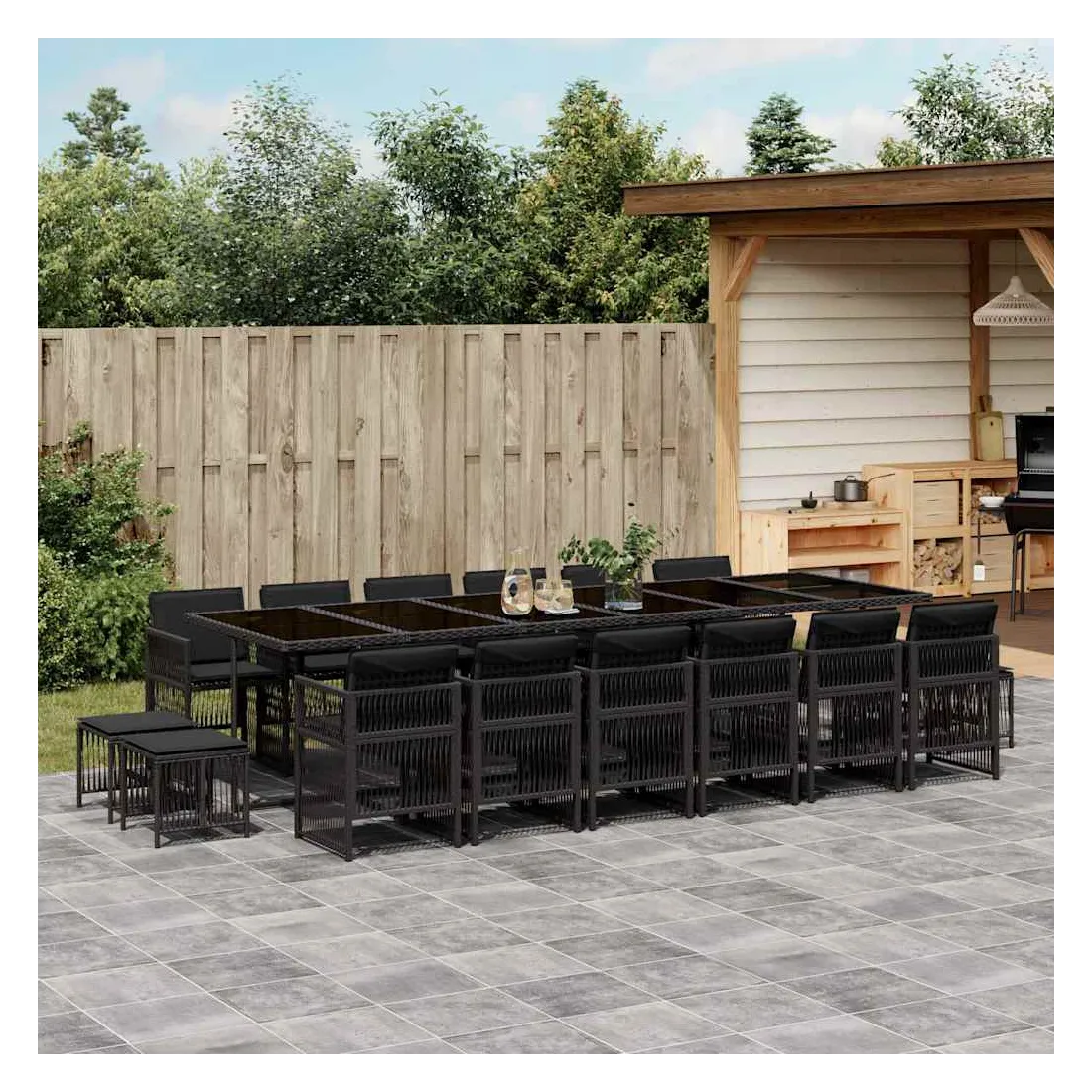 Cet ensemble de salle à manger de jardin est un excellent choix pour les repas en plein air ou pour vous détendre dans le jardin, dans l'arrière-cour ou sur la terrasse. Matériau durable : la résine tressée, également connue sous le nom de poly rotin, est un matériau synthétique solide et nécessitant peu d'entretien qui ressemble au rotin naturel. Il est léger, facile à nettoyer et couramment utilisé pour les meubles d'extérieur en raison de sa durabilité et de ses propriétés de résistance aux intempéries.Rangement compact : ces chaises sont dotées d'un dossier rabattable, ce qui permet de les ranger facilement sous la table. Une fois pliées, elles se rangent parfaitement sous la table, formant un cube peu encombrant. De plus, les tabourets peuvent également être rangés sous les chaises, maximisant encore davantage l'efficacité de l'espace.Expérience d'assise confortable : ce mobilier d'extérieur, doté de coussins épais, offre une expérience d'assise confortable.Housse amovible et lavable : ces coussins sont dotés de housses amovibles pour un lavage et un entretien faciles. Les housses de coussin ont un rabat à l'arrière pour une fixation facile aux dossiers.Dessus en verre : le dessus de la table d'extérieur est fabriqué en verre trempé solide et durable, ce qui le rend facile à nettoyer avec un chiffon humide et ajoute une touche d'élégance à votre espace extérieur. Bon à savoir : Pour que vos meubles d'extérieur restent beaux, nous vous recommandons de les protéger avec une housse imperméable.