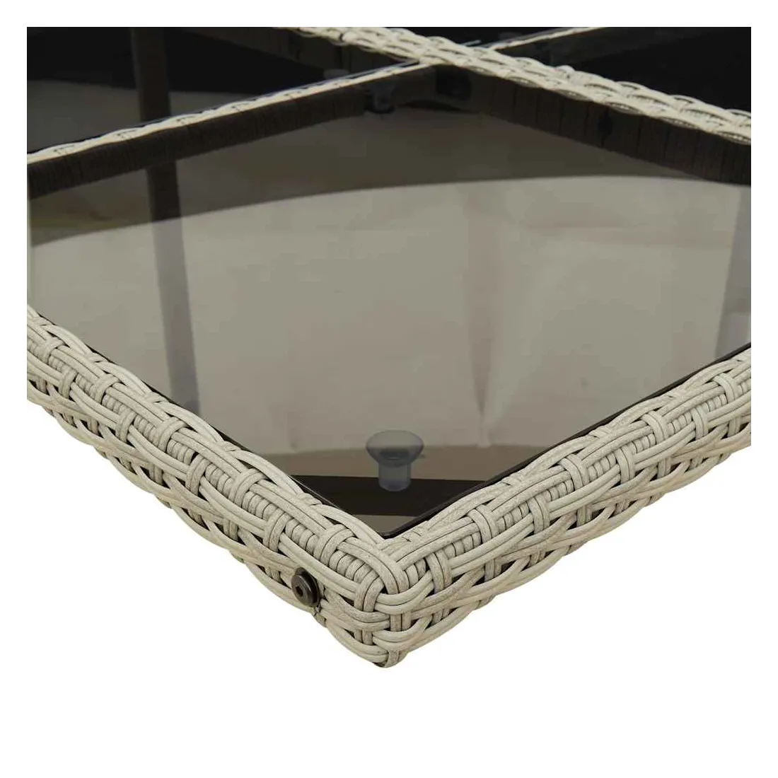 - Matériau : résine tressée, acier enduit de poudre, verre trempé