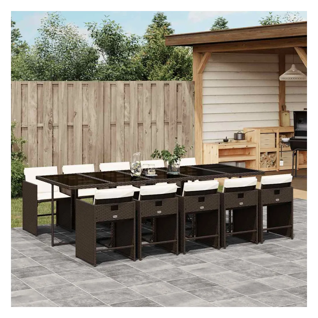 Cet ensemble de salle à manger de jardin est un excellent choix pour les repas en plein air ou pour vous détendre dans le jardin, dans l'arrière-cour ou sur la terrasse. Matériau durable : la résine tressée, également connue sous le nom de poly rotin, est un matériau synthétique solide et nécessitant peu d'entretien qui ressemble au rotin naturel. Il est léger, facile à nettoyer et couramment utilisé pour les meubles d'extérieur en raison de sa durabilité et de ses propriétés de résistance aux intempéries.Rangement compact : ces chaises sont dotées d'un dossier rabattable, ce qui permet de les ranger facilement sous la table. Une fois pliées, elles se rangent parfaitement sous la table, formant un cube peu encombrant.Expérience d'assise confortable : ce mobilier d'extérieur, doté de coussins épais, offre une expérience d'assise confortable.Housse amovible et lavable : ces coussins de siège sont dotés de housses amovibles pour un lavage et un entretien faciles. Les housses de coussin de chaise ont un rabat à l'arrière pour une fixation facile aux chaises.Dessus stable et facile à nettoyer : cette table de jardin est dotée d'un dessus en verre trempé robuste, durable et facile à nettoyer à l'aide d'un chiffon humide. Bon à savoir : Pour que vos meubles d'extérieur restent beaux, nous vous recommandons de les protéger avec une housse imperméable.