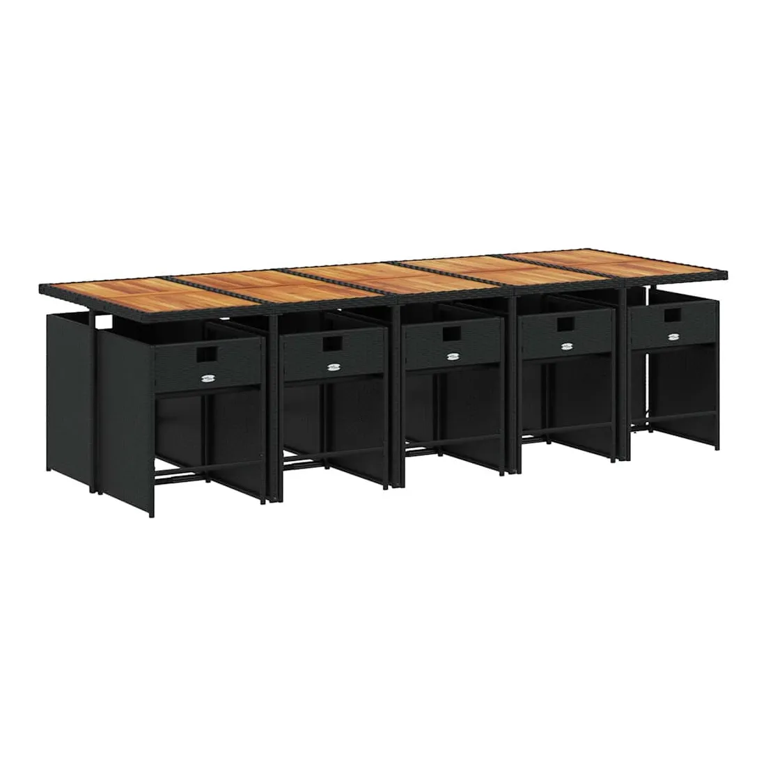 Ensemble à manger de jardin 11 pcs coussins noir résine tressée