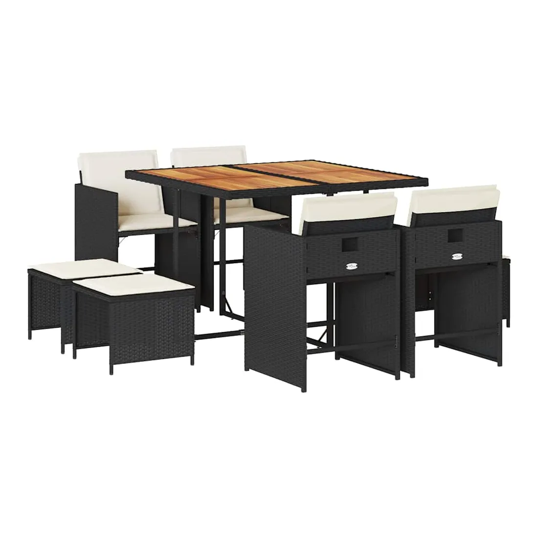Cet ensemble de salle à manger de jardin est un excellent choix pour les repas en plein air ou pour vous détendre dans le jardin, dans l'arrière-cour ou sur la terrasse. Matériau durable : la résine tressée, également connue sous le nom de poly rotin, est un matériau synthétique solide et nécessitant peu d'entretien qui ressemble au rotin naturel. Il est léger, facile à nettoyer et couramment utilisé pour les meubles d'extérieur en raison de sa durabilité et de ses propriétés de résistance aux intempéries.Rangement compact : ces chaises sont dotées d'un dossier rabattable, ce qui permet de les ranger facilement sous la table. Une fois pliées, elles se rangent parfaitement sous la table, formant un cube peu encombrant. De plus, les tabourets peuvent également être rangés sous les chaises, maximisant encore davantage l'efficacité de l'espace.Expérience d'assise confortable : ce mobilier d'extérieur, doté de coussins bien rembourrés, offre une expérience d'assise confortable.Housse amovible et lavable : ces coussins de siège sont dotés de housses amovibles pour un lavage et un entretien faciles. Les housses de coussin de chaise ont un rabat à l'arrière pour une fixation facile aux chaises.Dessus stable et facile à nettoyer : cette table de jardin a un dessus en bois d'acacia robuste, durable et facile à nettoyer avec un chiffon humide. Bon à savoir : Pour que vos meubles d'extérieur restent beaux, nous vous recommandons de les protéger avec une housse imperméable.