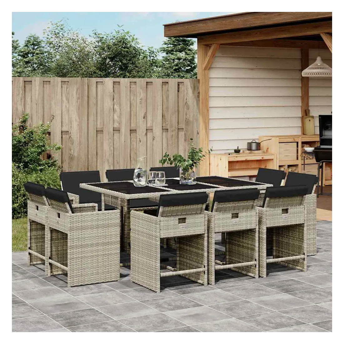 Cet ensemble de salle à manger de jardin est un excellent choix pour les repas en plein air ou pour vous détendre dans le jardin, dans l'arrière-cour ou sur la terrasse. Matériau durable : la résine tressée, également connue sous le nom de poly rotin, est un matériau synthétique solide et nécessitant peu d'entretien qui ressemble au rotin naturel. Il est léger, facile à nettoyer et couramment utilisé pour les meubles d'extérieur en raison de sa durabilité et de ses propriétés de résistance aux intempéries.Rangement compact : ces chaises sont dotées d'un dossier rabattable, ce qui permet de les ranger facilement sous la table. Une fois pliées, elles se rangent parfaitement sous la table, formant un cube peu encombrant.Expérience d'assise confortable : ce mobilier d'extérieur, doté de coussins épais, offre une expérience d'assise confortable.Housse amovible et lavable : ces coussins de siège sont dotés de housses amovibles pour un lavage et un entretien faciles. Les housses de coussin de chaise ont un rabat à l'arrière pour une fixation facile aux chaises.Dessus stable et facile à nettoyer : cette table de jardin est dotée d'un dessus en verre trempé robuste, durable et facile à nettoyer à l'aide d'un chiffon humide. Bon à savoir : Pour que vos meubles d'extérieur restent beaux, nous vous recommandons de les protéger avec une housse imperméable.