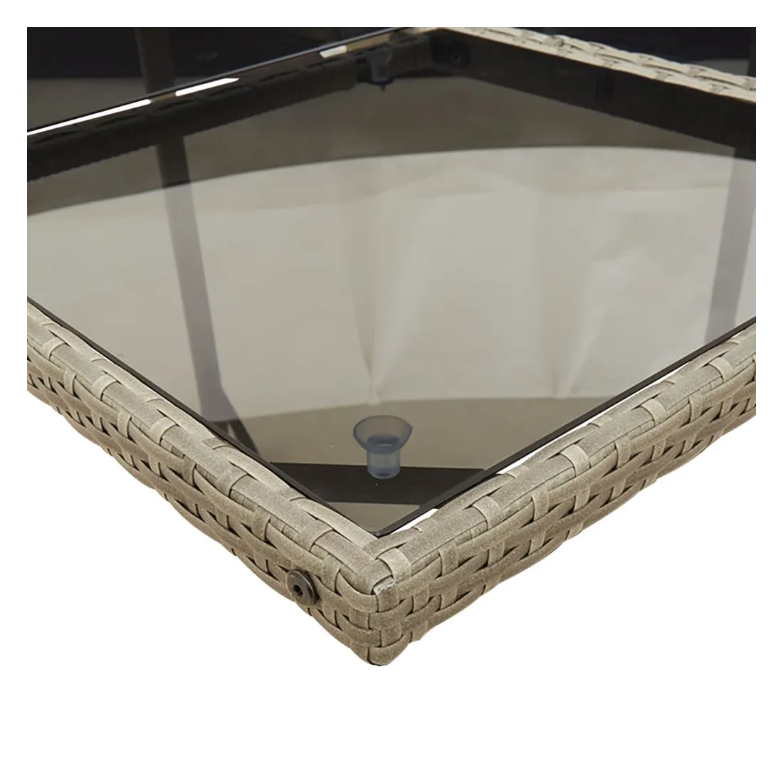 - Matériau : résine tressée, acier enduit de poudre, verre trempé