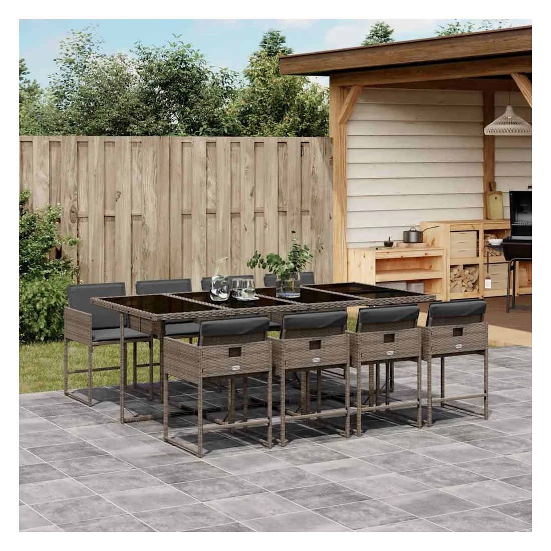 Cet ensemble de salle à manger de jardin est un excellent choix pour les repas en plein air ou pour vous détendre dans le jardin, dans l'arrière-cour ou sur la terrasse. Matériau durable : la résine tressée, également connue sous le nom de poly rotin, est un matériau synthétique solide et nécessitant peu d'entretien qui ressemble au rotin naturel. Il est léger, facile à nettoyer et couramment utilisé pour les meubles d'extérieur en raison de sa durabilité et de ses propriétés de résistance aux intempéries.Rangement compact : ces chaises sont dotées d'un dossier rabattable, ce qui permet de les ranger facilement sous la table. Une fois pliées, elles se rangent parfaitement sous la table, formant un cube peu encombrant.Expérience d'assise confortable : ce mobilier d'extérieur, doté de coussins épais, offre une expérience d'assise confortable.Housse amovible et lavable : ces coussins de siège sont dotés de housses amovibles pour un lavage et un entretien faciles. Les housses de coussin ont un rabat à l'arrière pour une fixation facile aux dossiers.Dessus en verre : le dessus de la table d'extérieur est fabriqué en verre trempé solide et durable, ce qui le rend facile à nettoyer avec un chiffon humide et ajoute une touche d'élégance à votre espace extérieur. Bon à savoir :Pour que vos meubles d'extérieur restent beaux, nous vous recommandons de les protéger avec une housse imperméable.