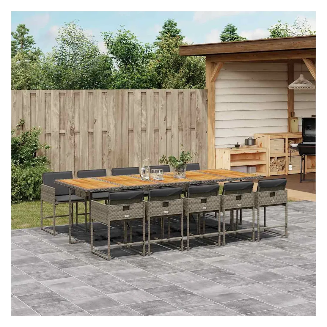 Cet ensemble de salle à manger de jardin est un excellent choix pour les repas en plein air ou pour vous détendre dans le jardin, dans l'arrière-cour ou sur la terrasse. Matériau durable : la résine tressée, également connue sous le nom de poly rotin, est un matériau synthétique solide et nécessitant peu d'entretien qui ressemble au rotin naturel. Il est léger, facile à nettoyer et couramment utilisé pour les meubles d'extérieur en raison de sa durabilité et de ses propriétés de résistance aux intempéries.Rangement compact : ces chaises sont dotées d'un dossier rabattable, ce qui permet de les ranger facilement sous la table. Une fois pliées, elles se rangent parfaitement sous la table, formant un cube peu encombrant.Expérience d'assise confortable : ce mobilier d'extérieur, doté de coussins épais, offre une expérience d'assise confortable.Housse amovible et lavable : ces coussins de siège sont dotés de housses amovibles pour un lavage et un entretien faciles. Les housses de coussin ont un rabat à l'arrière pour une fixation facile aux dossiers.Dessus stable et facile à nettoyer : cette table de jardin a un dessus en bois d'acacia robuste, durable et facile à nettoyer avec un chiffon humide. Bon à savoir :Pour que vos meubles d'extérieur restent beaux, nous vous recommandons de les protéger avec une housse imperméable.