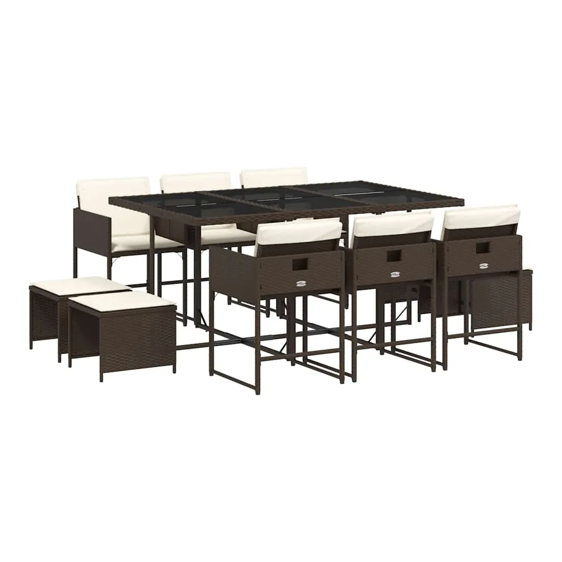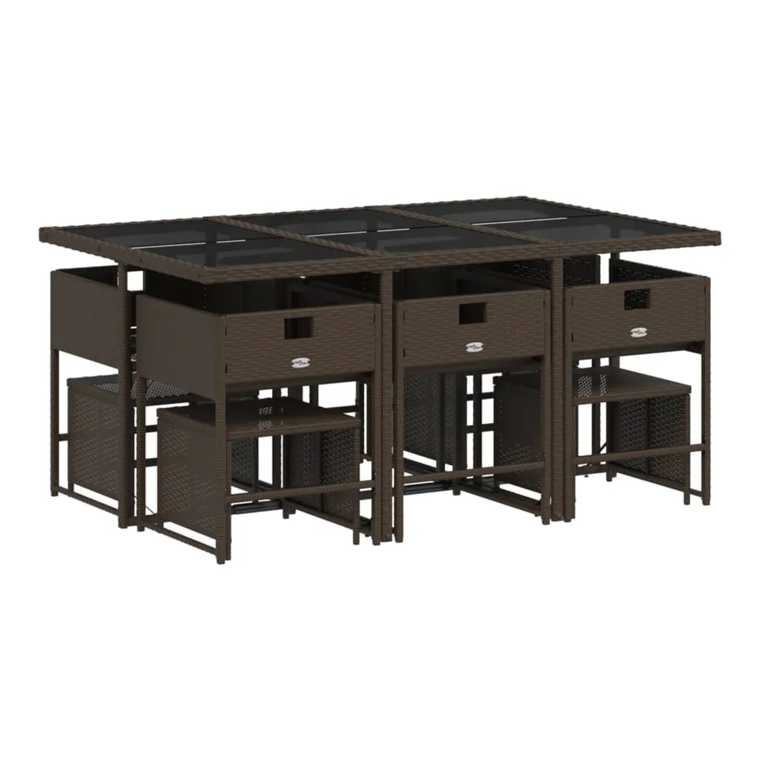 Cet ensemble de salle à manger de jardin est un excellent choix pour les repas en plein air ou pour vous détendre dans le jardin, dans l'arrière-cour ou sur la terrasse. Matériau durable : la résine tressée, également connue sous le nom de poly rotin, est un matériau synthétique solide et nécessitant peu d'entretien qui ressemble au rotin naturel. Il est léger, facile à nettoyer et couramment utilisé pour les meubles d'extérieur en raison de sa durabilité et de ses propriétés de résistance aux intempéries.Rangement compact : ces chaises sont dotées d'un dossier rabattable, ce qui permet de les ranger facilement sous la table. Une fois pliées, elles se rangent parfaitement sous la table, formant un cube peu encombrant. De plus, les tabourets peuvent également être rangés sous les chaises, maximisant encore davantage l'efficacité de l'espace.Expérience d'assise confortable : ce mobilier d'extérieur, doté de coussins épais, offre une expérience d'assise confortable.Housse amovible et lavable : ces coussins de siège sont dotés de housses amovibles pour un lavage et un entretien faciles. Les housses de coussin ont un rabat à l'arrière pour une fixation facile aux dossiers.Dessus en verre : le dessus de la table d'extérieur est fabriqué en verre trempé solide et durable, ce qui le rend facile à nettoyer avec un chiffon humide et ajoute une touche d'élégance à votre espace extérieur. Bon à savoir : Pour que vos meubles d'extérieur restent beaux, nous vous recommandons de les protéger avec une housse imperméable.