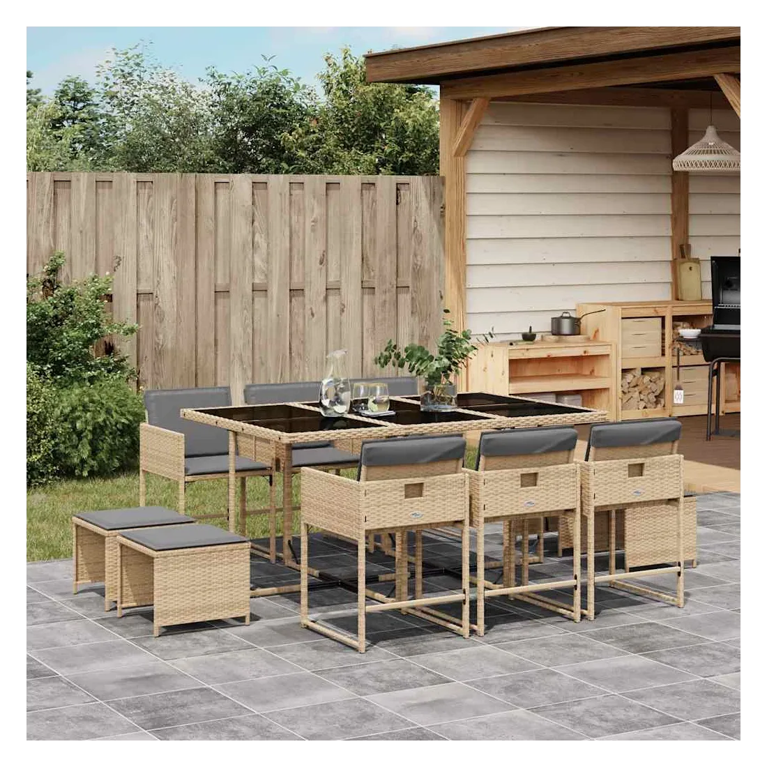 Cet ensemble de salle à manger de jardin est un excellent choix pour les repas en plein air ou pour vous détendre dans le jardin, dans l'arrière-cour ou sur la terrasse. Matériau durable : la résine tressée, également connue sous le nom de poly rotin, est un matériau synthétique solide et nécessitant peu d'entretien qui ressemble au rotin naturel. Il est léger, facile à nettoyer et couramment utilisé pour les meubles d'extérieur en raison de sa durabilité et de ses propriétés de résistance aux intempéries.Rangement compact : ces chaises sont dotées d'un dossier rabattable, ce qui permet de les ranger facilement sous la table. Une fois pliées, elles se rangent parfaitement sous la table, formant un cube peu encombrant. De plus, les tabourets peuvent également être rangés sous les chaises, maximisant encore davantage l'efficacité de l'espace.Expérience d'assise confortable : ce mobilier d'extérieur, doté de coussins épais, offre une expérience d'assise confortable.Housse amovible et lavable : ces coussins de siège sont dotés de housses amovibles pour un lavage et un entretien faciles. Les housses de coussin ont un rabat à l'arrière pour une fixation facile aux dossiers.Dessus en verre : le dessus de la table d'extérieur est fabriqué en verre trempé solide et durable, ce qui le rend facile à nettoyer avec un chiffon humide et ajoute une touche d'élégance à votre espace extérieur. Bon à savoir : Pour que vos meubles d'extérieur restent beaux, nous vous recommandons de les protéger avec une housse imperméable.