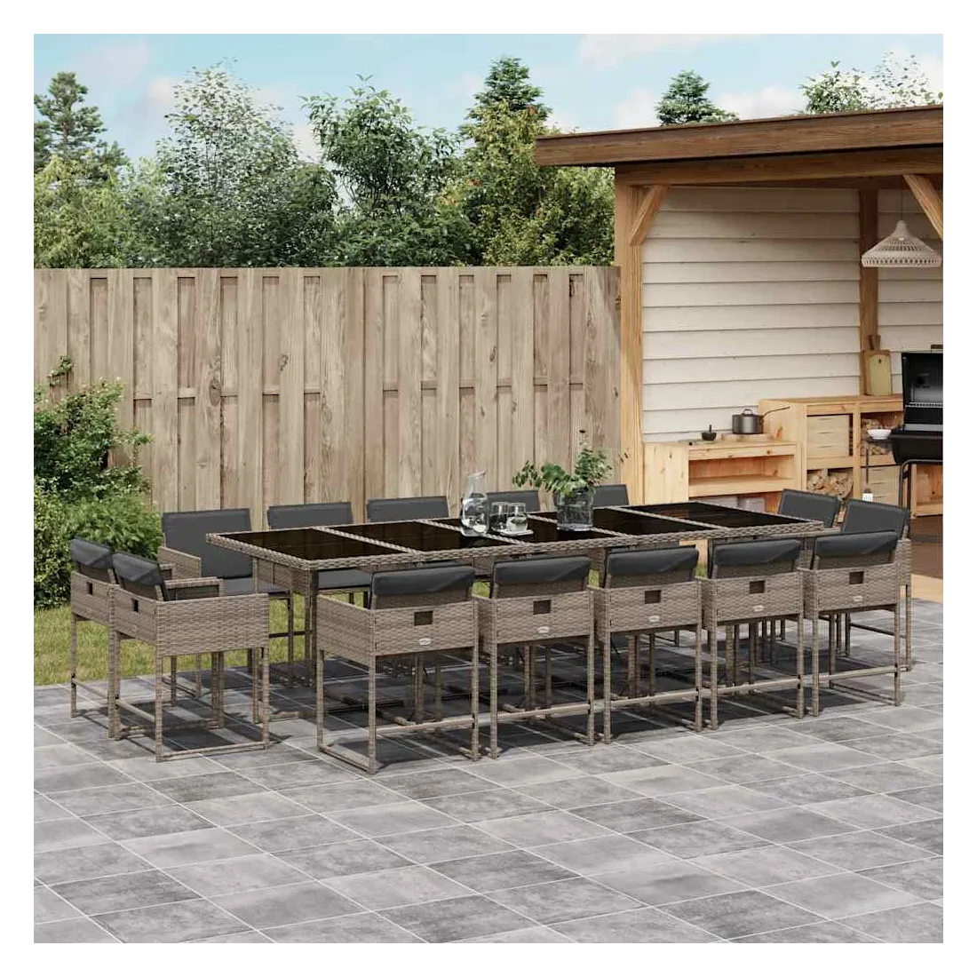 Cet ensemble de salle à manger de jardin est un excellent choix pour les repas en plein air ou pour vous détendre dans le jardin, l'arrière-cour ou le patio. Matériau durable : la résine tressée, également connue sous le nom de poly rotin, est un matériau synthétique solide et nécessitant peu d'entretien qui ressemble au rotin naturel. Il est léger, facile à nettoyer et couramment utilisé pour les meubles d'extérieur en raison de sa durabilité et de ses propriétés de résistance aux intempéries.Rangement compact : ces chaises sont dotées d'un dossier rabattable, ce qui permet de les ranger facilement sous la table. Une fois pliées, elles se rangent parfaitement sous la table, formant un cube peu encombrant.Expérience d'assise confortable : ce mobilier d'extérieur, doté de coussins épais, offre une expérience d'assise confortable.Housse amovible et lavable : ces coussins de siège sont dotés de housses amovibles pour un lavage et un entretien faciles. Les housses de coussin de chaise ont un rabat à l'arrière pour une fixation facile aux chaises.Dessus en verre : le dessus de la table de jardin est fabriqué en verre trempé solide et durable, ce qui le rend facile à nettoyer avec un chiffon humide et ajoute une touche d'élégance à votre espace extérieur. Bon à savoir :Pour que vos meubles d'extérieur restent beaux, nous vous recommandons de les protéger avec une housse imperméable.