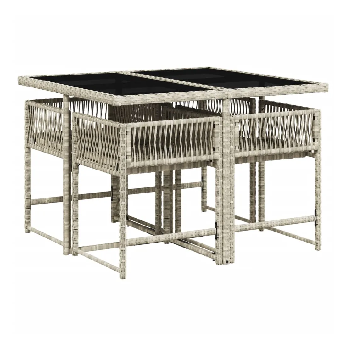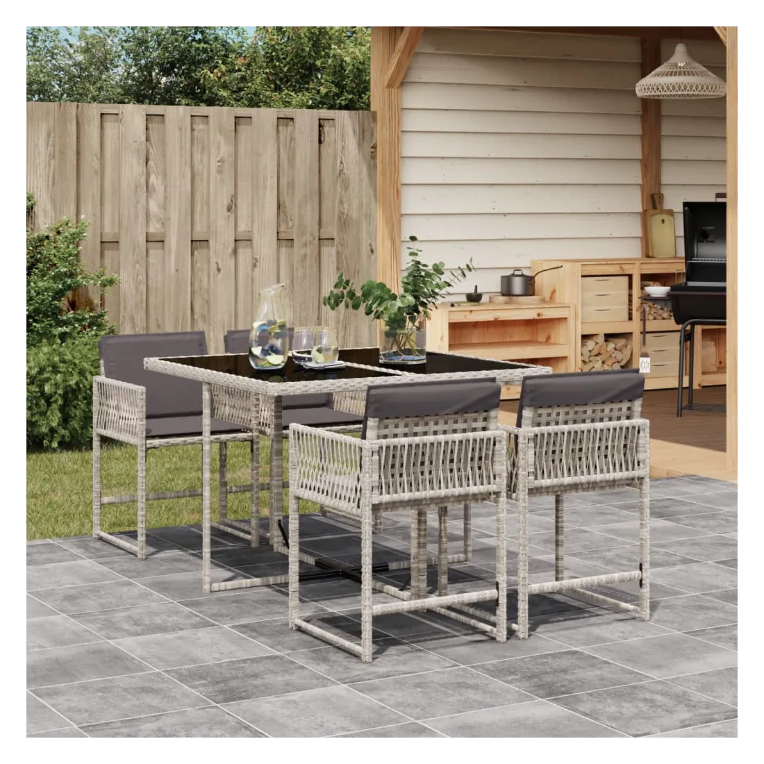 Cet ensemble de salle à manger de jardin est un excellent choix pour les repas en plein air ou pour vous détendre dans le jardin, dans l'arrière-cour ou sur la terrasse. Matériau durable : la résine tressée, également connue sous le nom de poly rotin, est un matériau synthétique solide et nécessitant peu d'entretien qui ressemble au rotin naturel. Il est léger, facile à nettoyer et couramment utilisé pour les meubles d'extérieur en raison de sa durabilité et de ses propriétés de résistance aux intempéries.Rangement compact : ces chaises sont dotées d'un dossier rabattable, ce qui permet de les ranger facilement sous la table. Une fois pliées, elles se rangent parfaitement sous la table, formant un cube peu encombrant.Expérience d'assise confortable : ce mobilier d'extérieur, doté de coussins épais, offre une expérience d'assise confortable.Housse amovible et lavable : ces coussins de siège sont dotés de housses amovibles pour un lavage et un entretien faciles. Les housses de coussin ont un rabat à l'arrière pour une fixation facile aux dossiers.Dessus en verre : le dessus de la table d'extérieur est fabriqué en verre trempé solide et durable, ce qui le rend facile à nettoyer avec un chiffon humide et ajoute une touche d'élégance à votre espace extérieur. Bon à savoir :Pour que vos meubles d'extérieur restent beaux, nous vous recommandons de les protéger avec une housse imperméable.