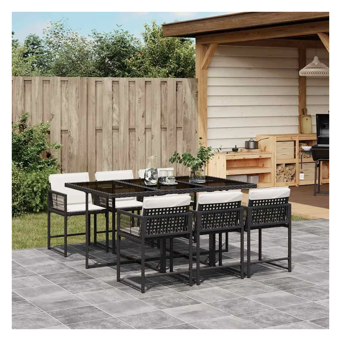 Cet ensemble de salle à manger de jardin est un excellent choix pour les repas en plein air ou pour vous détendre dans le jardin, dans l'arrière-cour ou sur la terrasse. Matériau durable : la résine tressée, également connue sous le nom de poly rotin, est un matériau synthétique solide et nécessitant peu d'entretien qui ressemble au rotin naturel. Il est léger, facile à nettoyer et couramment utilisé pour les meubles d'extérieur en raison de sa durabilité et de ses propriétés de résistance aux intempéries.Rangement compact : ces chaises sont dotées d'un dossier rabattable, ce qui permet de les ranger facilement sous la table. Une fois pliées, elles se rangent parfaitement sous la table, formant un cube peu encombrant.Expérience d'assise confortable : ce mobilier d'extérieur, doté de coussins épais, offre une expérience d'assise confortable.Housse amovible et lavable : ces coussins de siège sont dotés de housses amovibles pour un lavage et un entretien faciles. Les housses de coussin ont un rabat à l'arrière pour une fixation facile aux dossiers.Dessus en verre : le dessus de la table d'extérieur est fabriqué en verre trempé solide et durable, ce qui le rend facile à nettoyer avec un chiffon humide et ajoute une touche d'élégance à votre espace extérieur. Bon à savoir :Pour que vos meubles d'extérieur restent beaux, nous vous recommandons de les protéger avec une housse imperméable.
