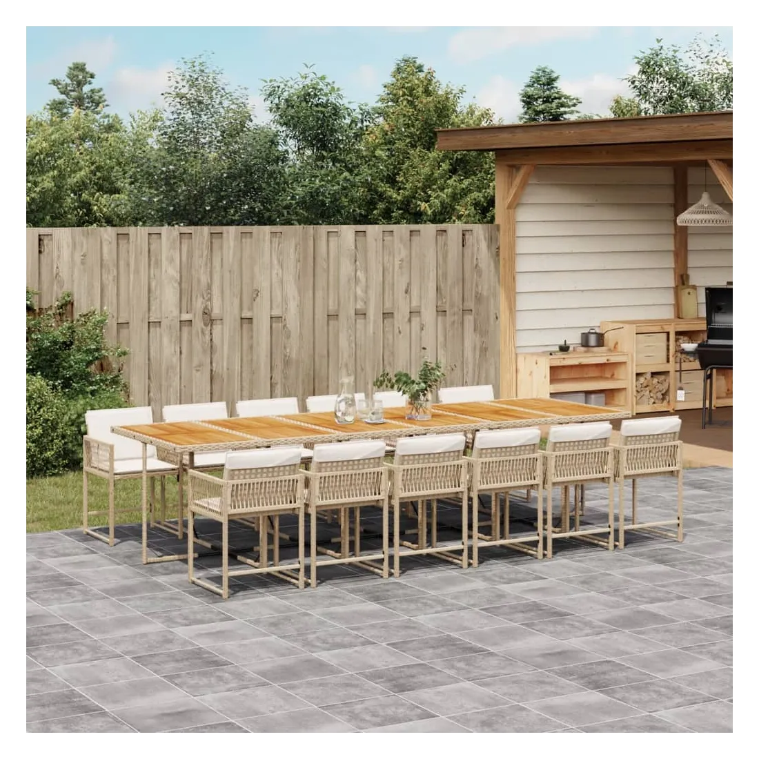 - Matériau : résine tressée, acier enduit de poudre, bois d'acacia massif