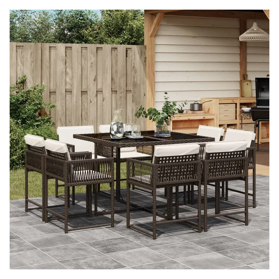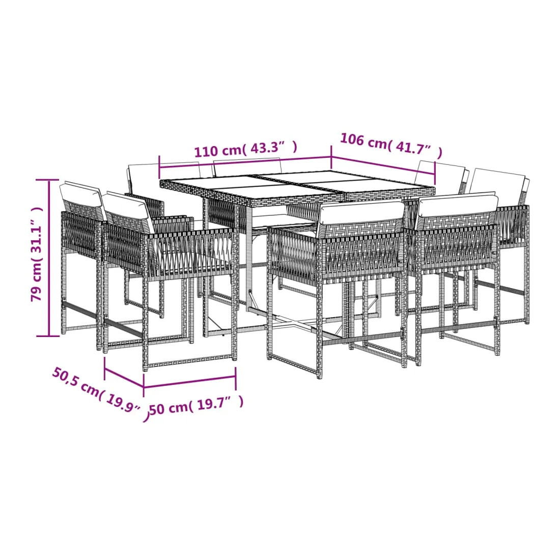 Cet ensemble de salle à manger de jardin est un excellent choix pour les repas en plein air ou pour vous détendre dans le jardin, dans l'arrière-cour ou sur la terrasse. Matériau durable : la résine tressée, également connue sous le nom de poly rotin, est un matériau synthétique solide et nécessitant peu d'entretien qui ressemble au rotin naturel. Il est léger, facile à nettoyer et couramment utilisé pour les meubles d'extérieur en raison de sa durabilité et de ses propriétés de résistance aux intempéries.Rangement compact : ces chaises sont dotées d'un dossier rabattable, ce qui permet de les ranger facilement sous la table. Une fois pliées, elles se rangent parfaitement sous la table, formant un cube peu encombrant.Expérience d'assise confortable : ce mobilier d'extérieur, doté de coussins épais, offre une expérience d'assise confortable.Housse amovible et lavable : ces coussins de siège sont dotés de housses amovibles pour un lavage et un entretien faciles. Les housses de coussin ont un rabat à l'arrière pour une fixation facile aux dossiers.Dessus en verre : le dessus de la table d'extérieur est fabriqué en verre trempé solide et durable, ce qui le rend facile à nettoyer avec un chiffon humide et ajoute une touche d'élégance à votre espace extérieur. Bon à savoir :Pour que vos meubles d'extérieur restent beaux, nous vous recommandons de les protéger avec une housse imperméable.