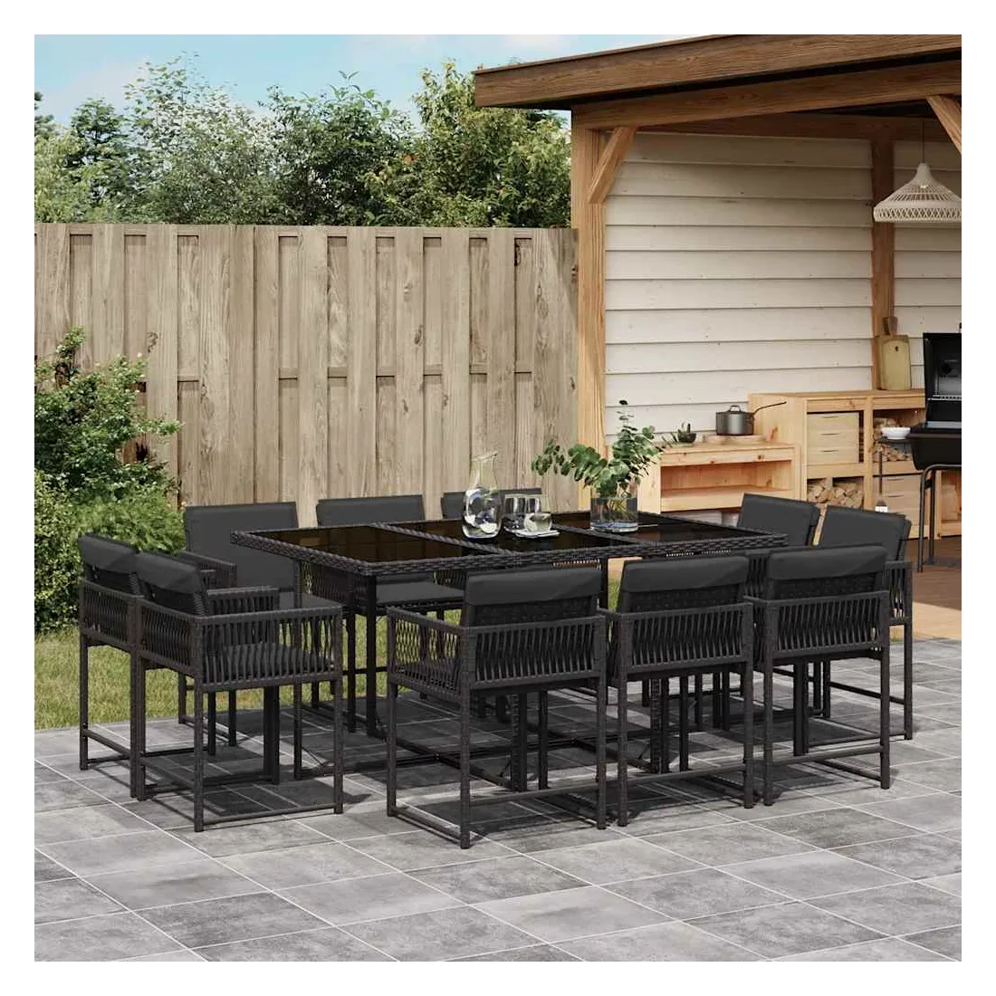 Cet ensemble de salle à manger de jardin est un excellent choix pour les repas en plein air ou pour vous détendre dans le jardin, dans l'arrière-cour ou sur la terrasse. Matériau durable : la résine tressée, également connue sous le nom de poly rotin, est un matériau synthétique solide et nécessitant peu d'entretien qui ressemble au rotin naturel. Il est léger, facile à nettoyer et couramment utilisé pour les meubles d'extérieur en raison de sa durabilité et de ses propriétés de résistance aux intempéries.Rangement compact : ces chaises sont dotées d'un dossier rabattable, ce qui permet de les ranger facilement sous la table. Une fois pliées, elles se rangent parfaitement sous la table, formant un cube peu encombrant.Expérience d'assise confortable : ce mobilier d'extérieur, doté de coussins épais, offre une expérience d'assise confortable.Housse amovible et lavable : ces coussins de siège sont dotés de housses amovibles pour un lavage et un entretien faciles. Les housses de coussin ont un rabat à l'arrière pour une fixation facile aux dossiers.Dessus en verre : le dessus de la table d'extérieur est fabriqué en verre trempé solide et durable, ce qui le rend facile à nettoyer avec un chiffon humide et ajoute une touche d'élégance à votre espace extérieur. Bon à savoir :Pour que vos meubles d'extérieur restent beaux, nous vous recommandons de les protéger avec une housse imperméable.
