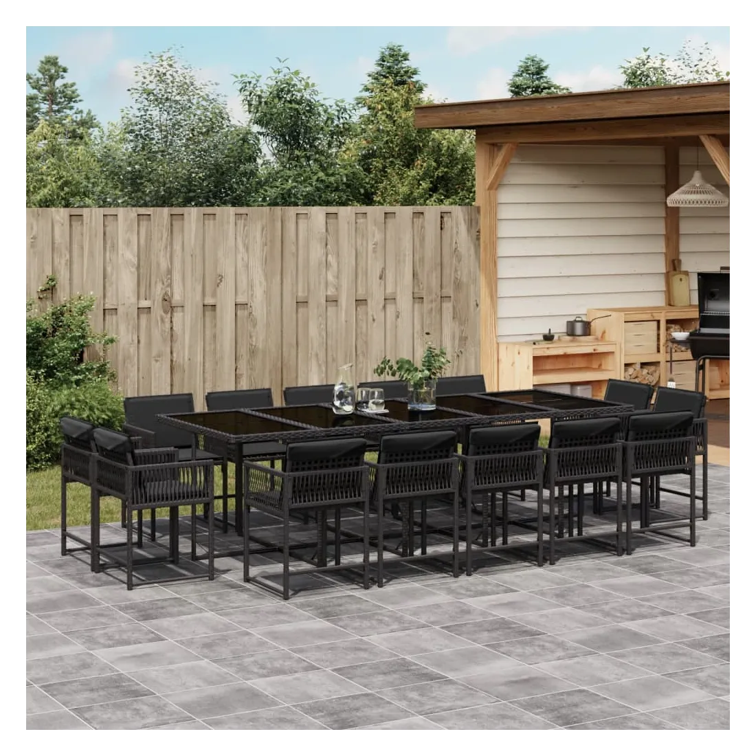 Cet ensemble de salle à manger de jardin est un excellent choix pour les repas en plein air ou pour vous détendre dans le jardin, dans l'arrière-cour ou sur la terrasse. Matériau durable : la résine tressée, également connue sous le nom de poly rotin, est un matériau synthétique solide et nécessitant peu d'entretien qui ressemble au rotin naturel. Il est léger, facile à nettoyer et couramment utilisé pour les meubles d'extérieur en raison de sa durabilité et de ses propriétés de résistance aux intempéries.Rangement compact : ces chaises sont dotées d'un dossier rabattable, ce qui permet de les ranger facilement sous la table. Une fois pliées, elles se rangent parfaitement sous la table, formant un cube peu encombrant.Expérience d'assise confortable : ce mobilier d'extérieur, doté de coussins épais, offre une expérience d'assise confortable.Housse amovible et lavable : ces coussins de siège sont dotés de housses amovibles pour un lavage et un entretien faciles. Les housses de coussin ont un rabat à l'arrière pour une fixation facile aux dossiers.Dessus en verre : le dessus de la table d'extérieur est fabriqué en verre trempé solide et durable, ce qui le rend facile à nettoyer avec un chiffon humide et ajoute une touche d'élégance à votre espace extérieur. Bon à savoir :Pour que vos meubles d'extérieur restent beaux, nous vous recommandons de les protéger avec une housse imperméable.