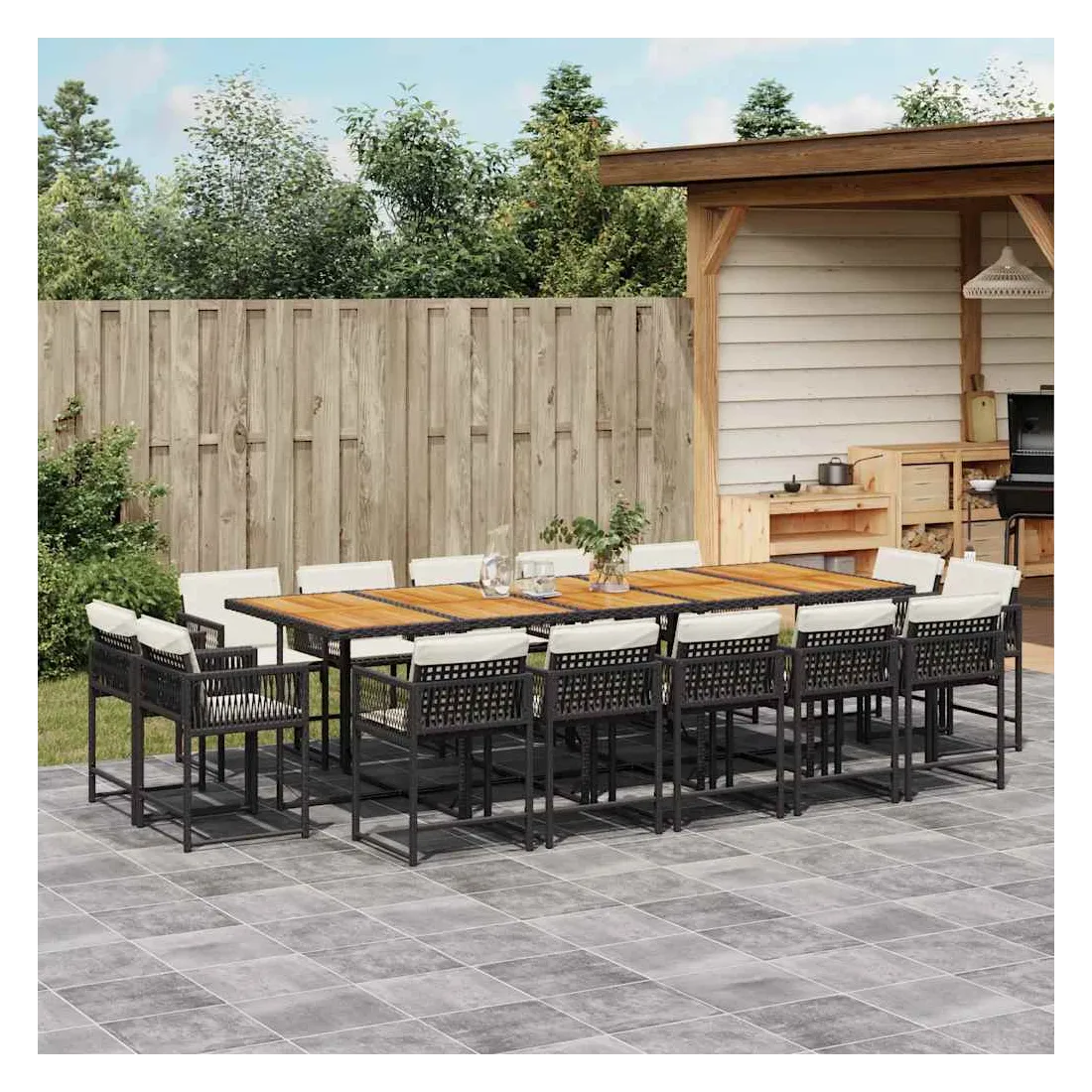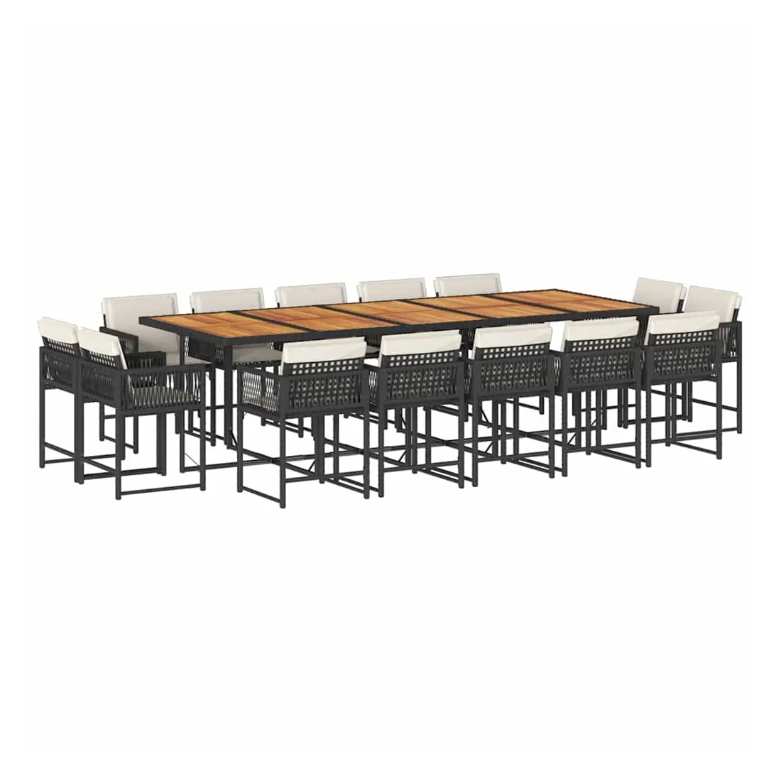 Ensemble à manger de jardin 15 pcs coussins noir résine tressée