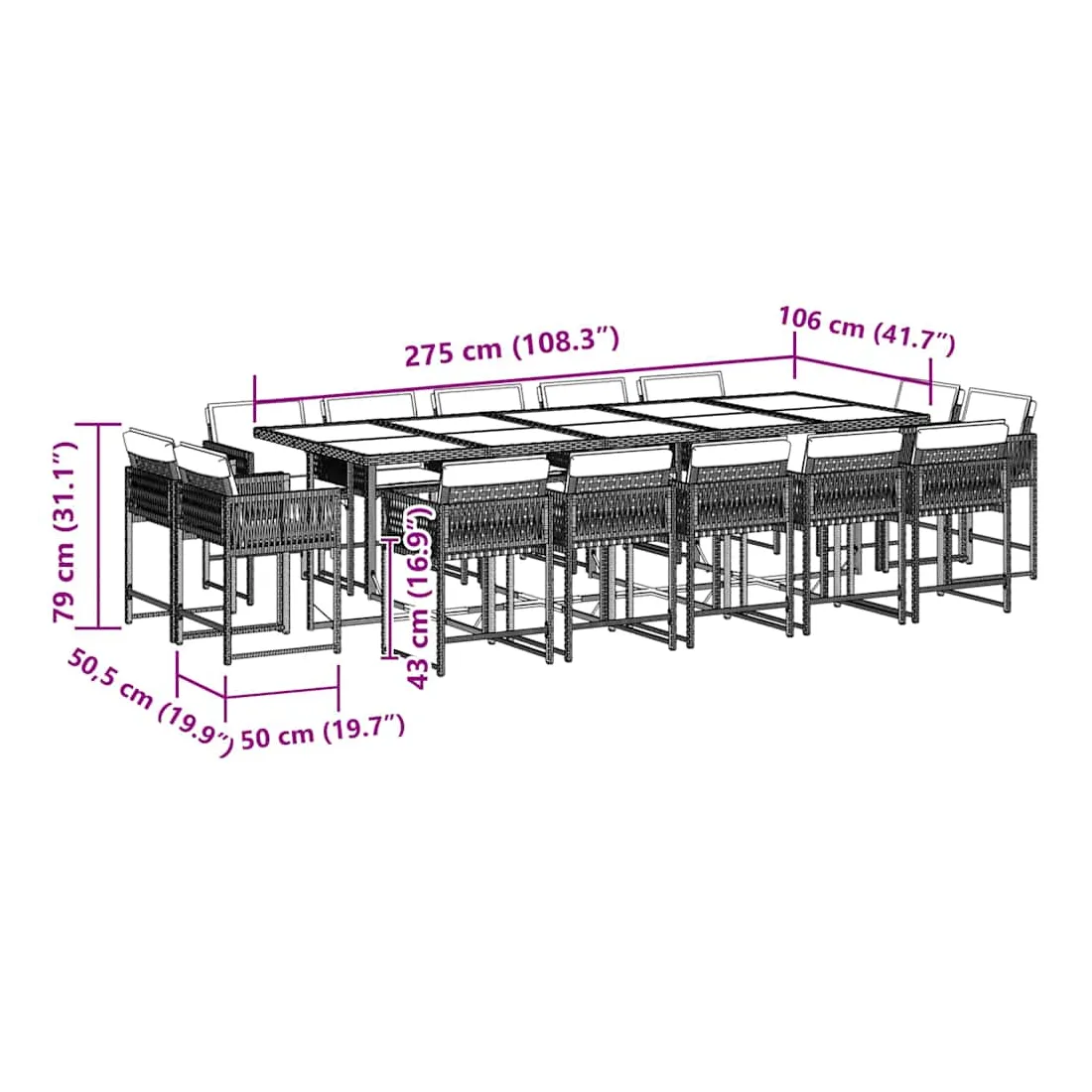 - Dimensions : 275 x 106 x 73 cm (L x l x H)