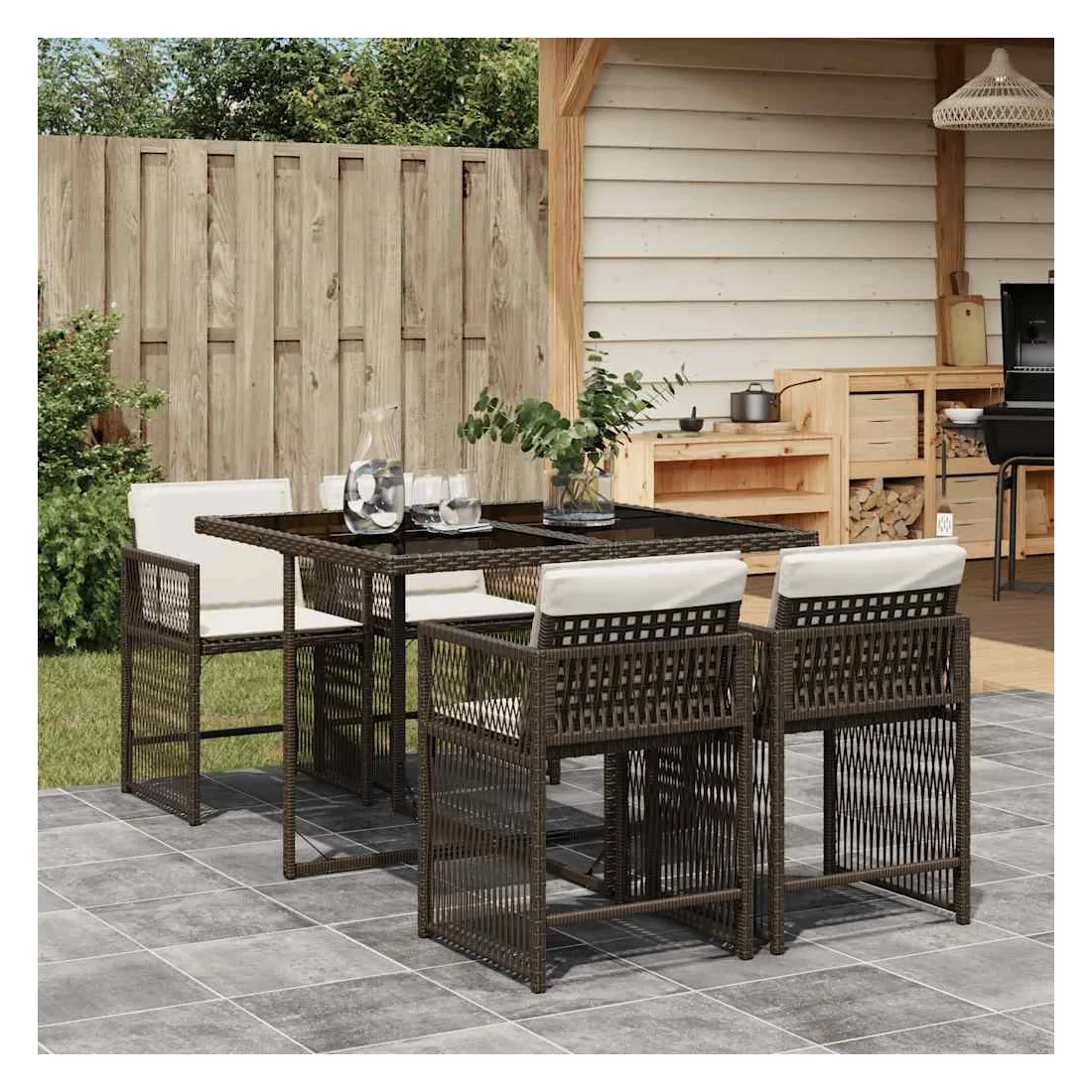 Cet ensemble de salle à manger de jardin est un excellent choix pour les repas en plein air ou pour vous détendre dans le jardin, l'arrière-cour ou le patio. Matériau durable : la résine tressée, également connue sous le nom de poly rotin, est un matériau synthétique solide et nécessitant peu d'entretien qui ressemble au rotin naturel. Il est léger, facile à nettoyer et couramment utilisé pour les meubles d'extérieur en raison de sa durabilité et de ses propriétés de résistance aux intempéries.Rangement compact : ces chaises sont dotées d'un dossier rabattable, ce qui permet de les ranger facilement sous la table. Une fois pliées, elles se rangent parfaitement sous la table, formant un cube peu encombrant.Expérience d'assise confortable : ce mobilier d'extérieur, doté de coussins épais, offre une expérience d'assise confortable.Housse amovible et lavable : ces coussins de siège sont dotés de housses amovibles pour un lavage et un entretien faciles. Les housses de coussin ont un rabat à l'arrière pour une fixation facile aux dossiers.Dessus en verre : le dessus de la table d'extérieur est fabriqué en verre trempé solide et durable, ce qui le rend facile à nettoyer avec un chiffon humide et ajoute une touche d'élégance à votre espace extérieur. Bon à savoir :Pour que vos meubles d'extérieur restent beaux, nous vous recommandons de les protéger avec une housse imperméable.