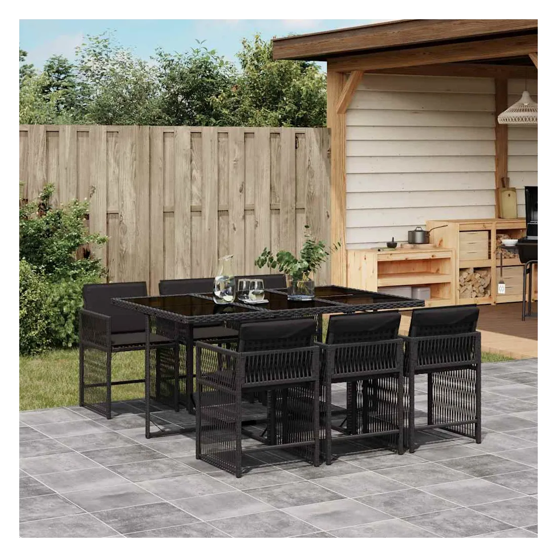 Cet ensemble de salle à manger de jardin est un excellent choix pour les repas en plein air ou pour vous détendre dans le jardin, l'arrière-cour ou le patio. Matériau durable : la résine tressée, également connue sous le nom de poly rotin, est un matériau synthétique solide et nécessitant peu d'entretien qui ressemble au rotin naturel. Il est léger, facile à nettoyer et couramment utilisé pour les meubles d'extérieur en raison de sa durabilité et de ses propriétés de résistance aux intempéries.Rangement compact : ces chaises sont dotées d'un dossier rabattable, ce qui permet de les ranger facilement sous la table. Une fois pliées, elles se rangent parfaitement sous la table, formant un cube peu encombrant.Expérience d'assise confortable : ce mobilier d'extérieur, doté de coussins épais, offre une expérience d'assise confortable.Housse amovible et lavable : ces coussins de siège sont dotés de housses amovibles pour un lavage et un entretien faciles. Les housses de coussin ont un rabat à l'arrière pour une fixation facile aux dossiers.Dessus en verre : le dessus de la table d'extérieur est fabriqué en verre trempé solide et durable, ce qui le rend facile à nettoyer avec un chiffon humide et ajoute une touche d'élégance à votre espace extérieur. Bon à savoir :Pour que vos meubles d'extérieur restent beaux, nous vous recommandons de les protéger avec une housse imperméable.