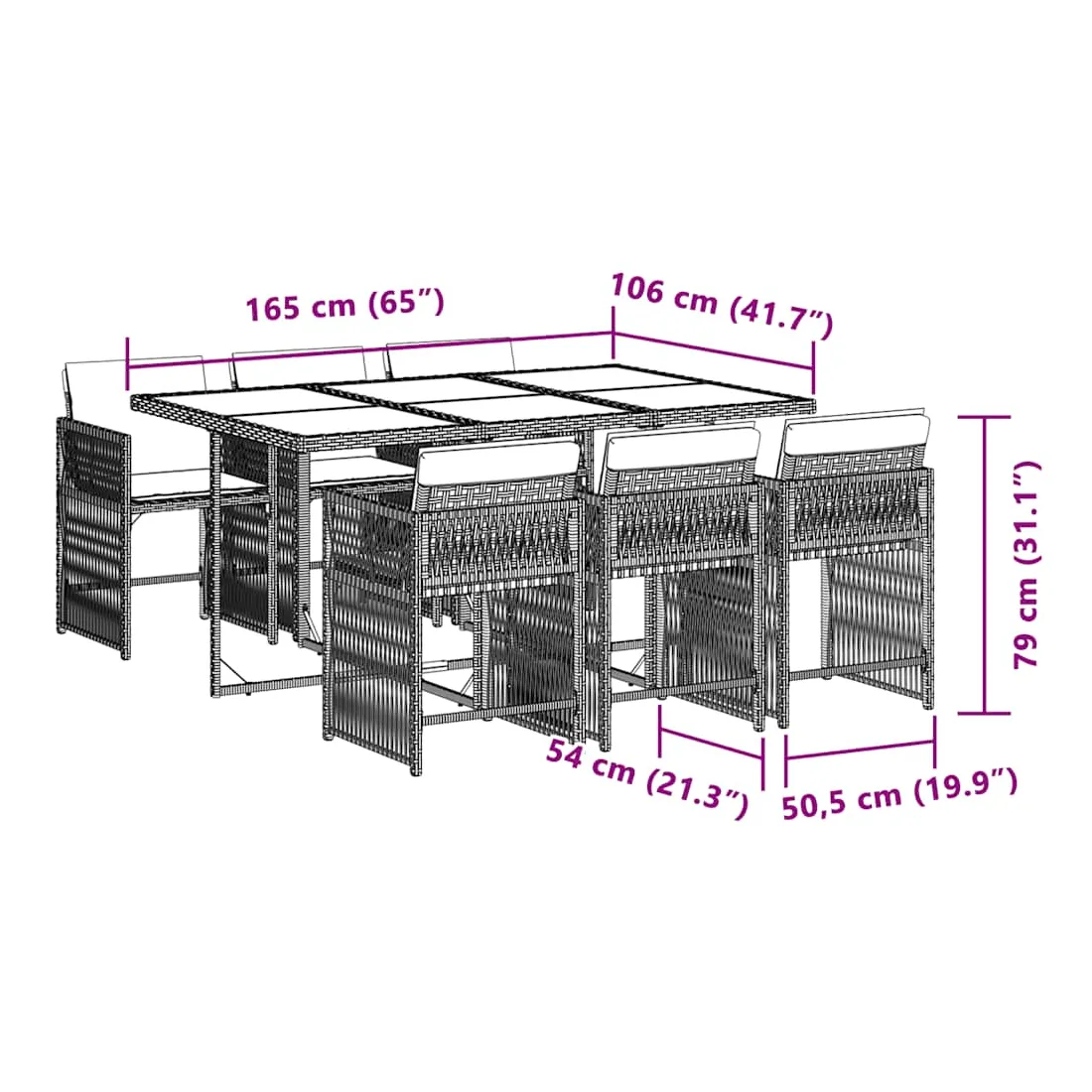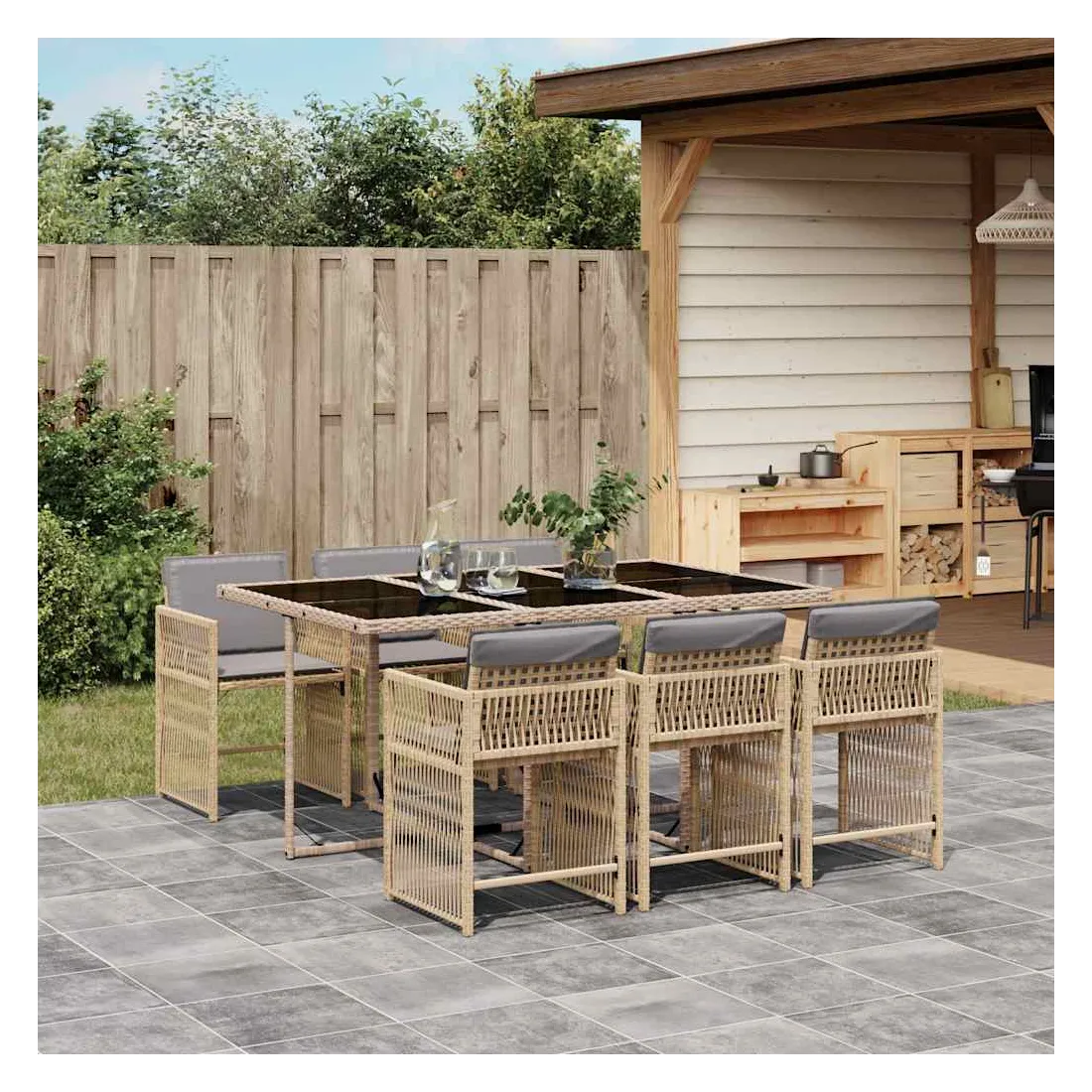 Cet ensemble de salle à manger de jardin est un excellent choix pour les repas en plein air ou pour vous détendre dans le jardin, l'arrière-cour ou le patio. Matériau durable : la résine tressée, également connue sous le nom de poly rotin, est un matériau synthétique solide et nécessitant peu d'entretien qui ressemble au rotin naturel. Il est léger, facile à nettoyer et couramment utilisé pour les meubles d'extérieur en raison de sa durabilité et de ses propriétés de résistance aux intempéries.Rangement compact : ces chaises sont dotées d'un dossier rabattable, ce qui permet de les ranger facilement sous la table. Une fois pliées, elles se rangent parfaitement sous la table, formant un cube peu encombrant.Expérience d'assise confortable : ce mobilier d'extérieur, doté de coussins épais, offre une expérience d'assise confortable.Housse amovible et lavable : ces coussins de siège sont dotés de housses amovibles pour un lavage et un entretien faciles. Les housses de coussin ont un rabat à l'arrière pour une fixation facile aux dossiers.Dessus en verre : le dessus de la table d'extérieur est fabriqué en verre trempé solide et durable, ce qui le rend facile à nettoyer avec un chiffon humide et ajoute une touche d'élégance à votre espace extérieur. Bon à savoir :Pour que vos meubles d'extérieur restent beaux, nous vous recommandons de les protéger avec une housse imperméable.