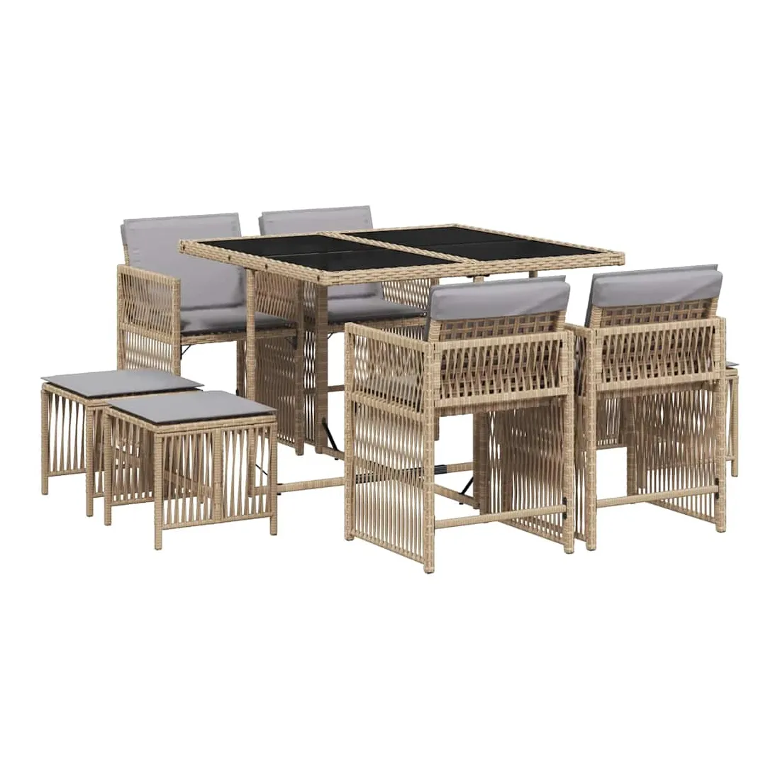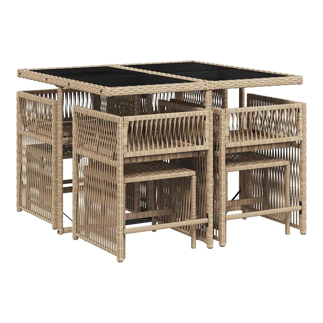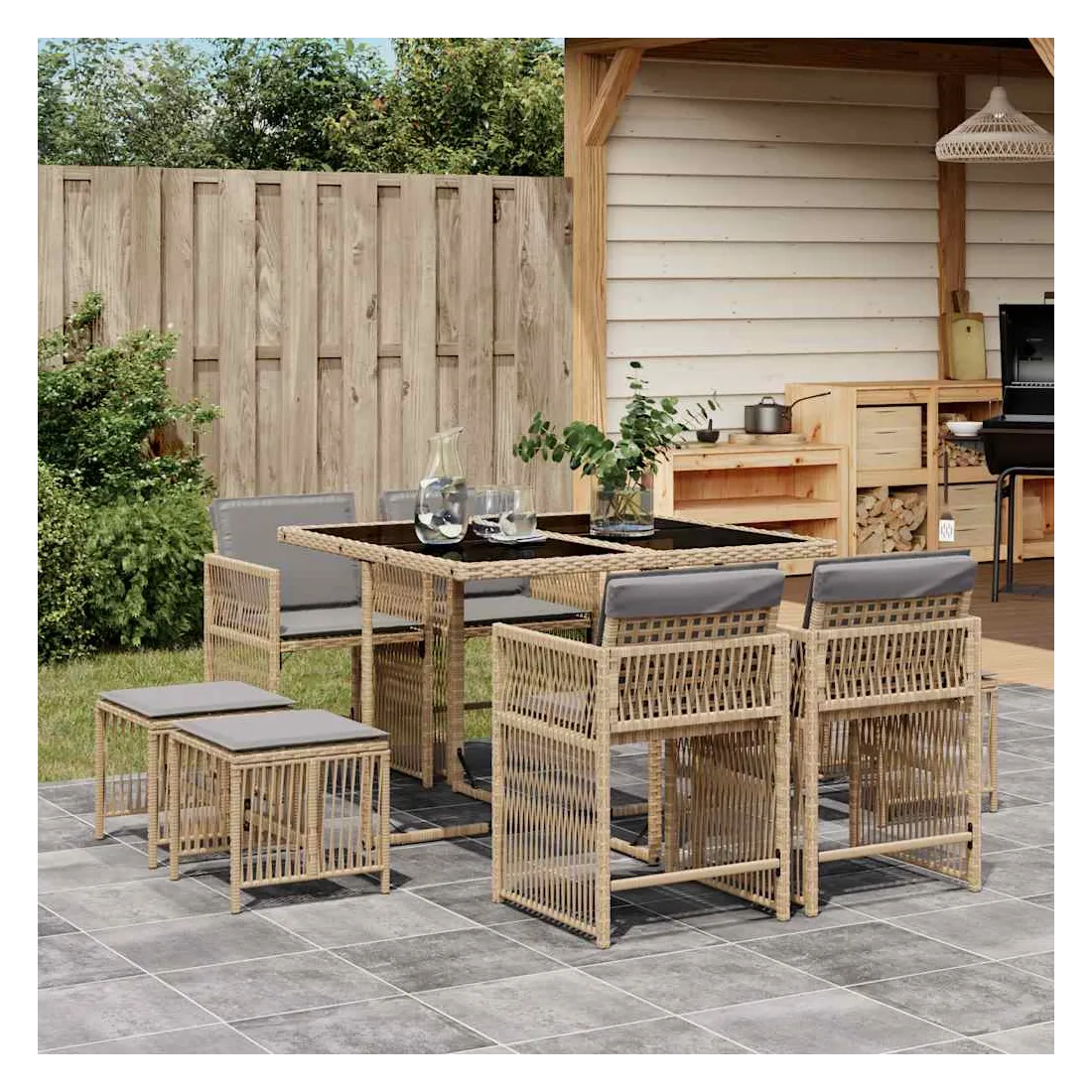 Cet ensemble de salle à manger de jardin est un excellent choix pour les repas en plein air ou pour vous détendre dans le jardin, l'arrière-cour ou le patio. Matériau durable : la résine tressée, également connue sous le nom de poly rotin, est un matériau synthétique solide et nécessitant peu d'entretien qui ressemble au rotin naturel. Il est léger, facile à nettoyer et couramment utilisé pour les meubles d'extérieur en raison de sa durabilité et de ses propriétés de résistance aux intempéries.Rangement compact : ces chaises sont dotées d'un dossier rabattable, ce qui permet de les ranger facilement sous la table. Une fois pliées, elles se rangent parfaitement sous la table, formant un cube peu encombrant.Expérience d'assise confortable : ce mobilier d'extérieur, doté de coussins épais, offre une expérience d'assise confortable.Housse amovible et lavable : ces coussins de siège sont dotés de housses amovibles pour un lavage et un entretien faciles. Les housses de coussin ont un rabat à l'arrière pour une fixation facile aux dossiers.Dessus en verre : le dessus de la table d'extérieur est fabriqué en verre trempé solide et durable, ce qui le rend facile à nettoyer avec un chiffon humide et ajoute une touche d'élégance à votre espace extérieur. Bon à savoir :Pour que vos meubles d'extérieur restent beaux, nous vous recommandons de les protéger avec une housse imperméable.