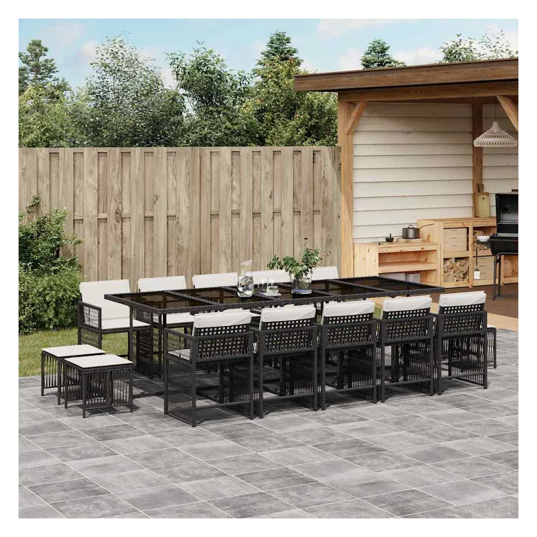 Cet ensemble de salle à manger de jardin est un excellent choix pour les repas en plein air ou pour vous détendre dans le jardin, l'arrière-cour ou le patio. Matériau durable : la résine tressée, également connue sous le nom de poly rotin, est un matériau synthétique solide et nécessitant peu d'entretien qui ressemble au rotin naturel. Il est léger, facile à nettoyer et couramment utilisé pour les meubles d'extérieur en raison de sa durabilité et de ses propriétés de résistance aux intempéries.Rangement compact : ces chaises sont dotées d'un dossier rabattable, ce qui permet de les ranger facilement sous la table. Une fois pliées, elles se rangent parfaitement sous la table, formant un cube peu encombrant.Expérience d'assise confortable : ce mobilier d'extérieur, doté de coussins épais, offre une expérience d'assise confortable.Housse amovible et lavable : ces coussins de siège sont dotés de housses amovibles pour un lavage et un entretien faciles. Les housses de coussin ont un rabat à l'arrière pour une fixation facile aux dossiers.Dessus en verre : le dessus de la table d'extérieur est fabriqué en verre trempé solide et durable, ce qui le rend facile à nettoyer avec un chiffon humide et ajoute une touche d'élégance à votre espace extérieur. Bon à savoir :Pour que vos meubles d'extérieur restent beaux, nous vous recommandons de les protéger avec une housse imperméable.