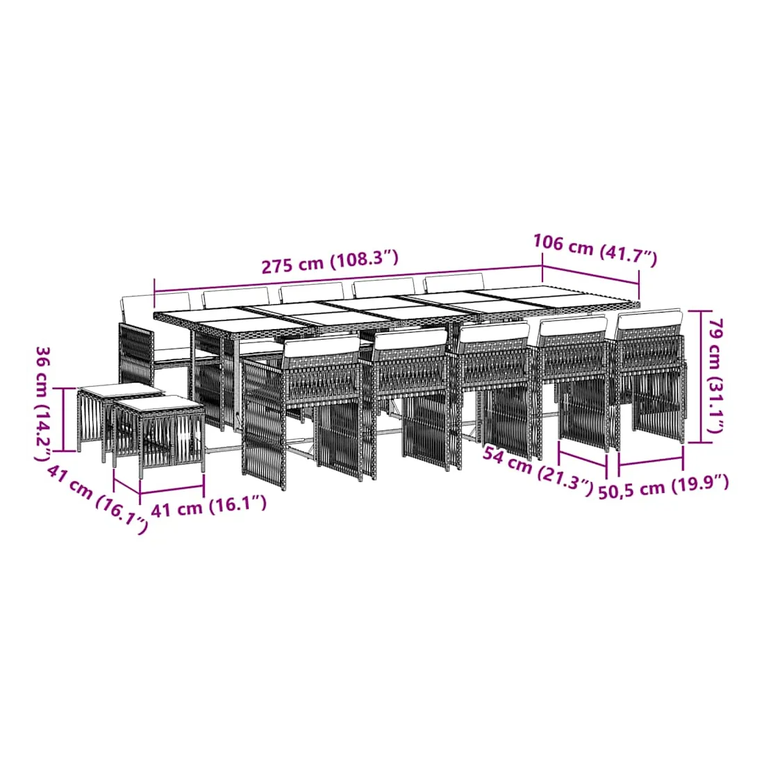 - Dimensions : 275 x 106 x 73 cm (L x l x H)
