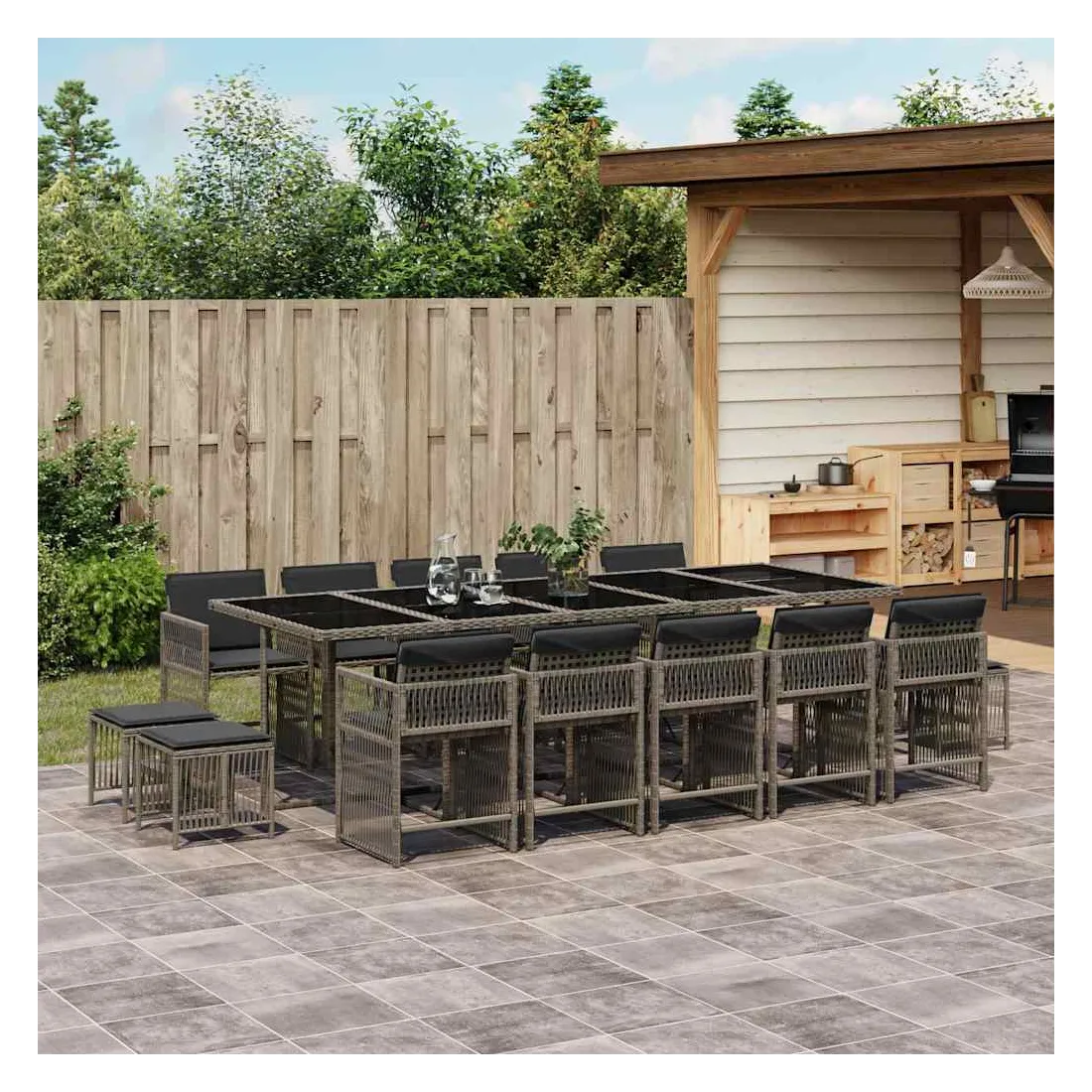 Cet ensemble de salle à manger de jardin est un excellent choix pour les repas en plein air ou pour vous détendre dans le jardin, l'arrière-cour ou le patio. Matériau durable : la résine tressée, également connue sous le nom de poly rotin, est un matériau synthétique solide et nécessitant peu d'entretien qui ressemble au rotin naturel. Il est léger, facile à nettoyer et couramment utilisé pour les meubles d'extérieur en raison de sa durabilité et de ses propriétés de résistance aux intempéries.Rangement compact : ces chaises sont dotées d'un dossier rabattable, ce qui permet de les ranger facilement sous la table. Une fois pliées, elles se rangent parfaitement sous la table, formant un cube peu encombrant.Expérience d'assise confortable : ce mobilier d'extérieur, doté de coussins épais, offre une expérience d'assise confortable.Housse amovible et lavable : ces coussins de siège sont dotés de housses amovibles pour un lavage et un entretien faciles. Les housses de coussin ont un rabat à l'arrière pour une fixation facile aux dossiers.Dessus en verre : le dessus de la table d'extérieur est fabriqué en verre trempé solide et durable, ce qui le rend facile à nettoyer avec un chiffon humide et ajoute une touche d'élégance à votre espace extérieur. Bon à savoir :Pour que vos meubles d'extérieur restent beaux, nous vous recommandons de les protéger avec une housse imperméable.