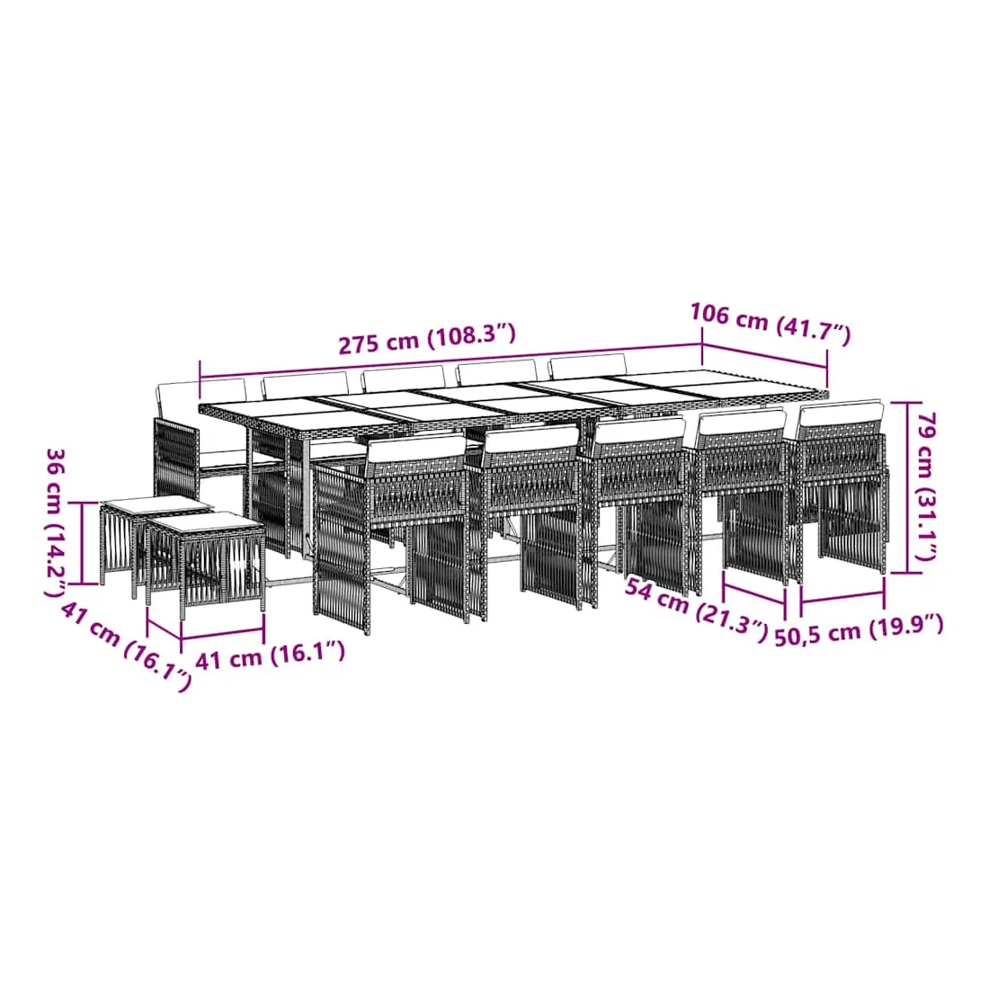 - Dimensions : 275 x 106 x 73 cm (L x l x H)