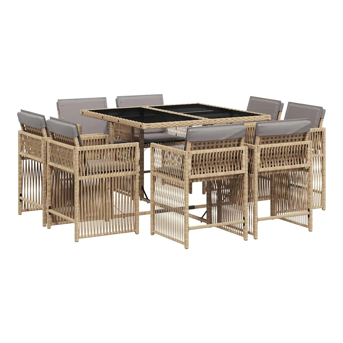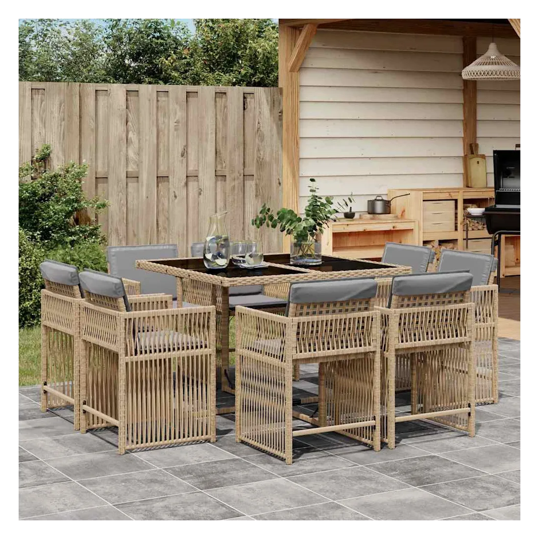 Cet ensemble de salle à manger de jardin est un excellent choix pour les repas en plein air ou pour vous détendre dans le jardin, l'arrière-cour ou le patio. Matériau durable : la résine tressée, également connue sous le nom de poly rotin, est un matériau synthétique solide et nécessitant peu d'entretien qui ressemble au rotin naturel. Il est léger, facile à nettoyer et couramment utilisé pour les meubles d'extérieur en raison de sa durabilité et de ses propriétés de résistance aux intempéries.Rangement compact : ces chaises sont dotées d'un dossier rabattable, ce qui permet de les ranger facilement sous la table. Une fois pliées, elles se rangent parfaitement sous la table, formant un cube peu encombrant.Expérience d'assise confortable : ce mobilier d'extérieur, doté de coussins épais, offre une expérience d'assise confortable.Housse amovible et lavable : ces coussins de siège sont dotés de housses amovibles pour un lavage et un entretien faciles. Les housses de coussin ont un rabat à l'arrière pour une fixation facile aux dossiers.Dessus en verre : le dessus de la table d'extérieur est fabriqué en verre trempé solide et durable, ce qui le rend facile à nettoyer avec un chiffon humide et ajoute une touche d'élégance à votre espace extérieur. Bon à savoir :Pour que vos meubles d'extérieur restent beaux, nous vous recommandons de les protéger avec une housse imperméable.