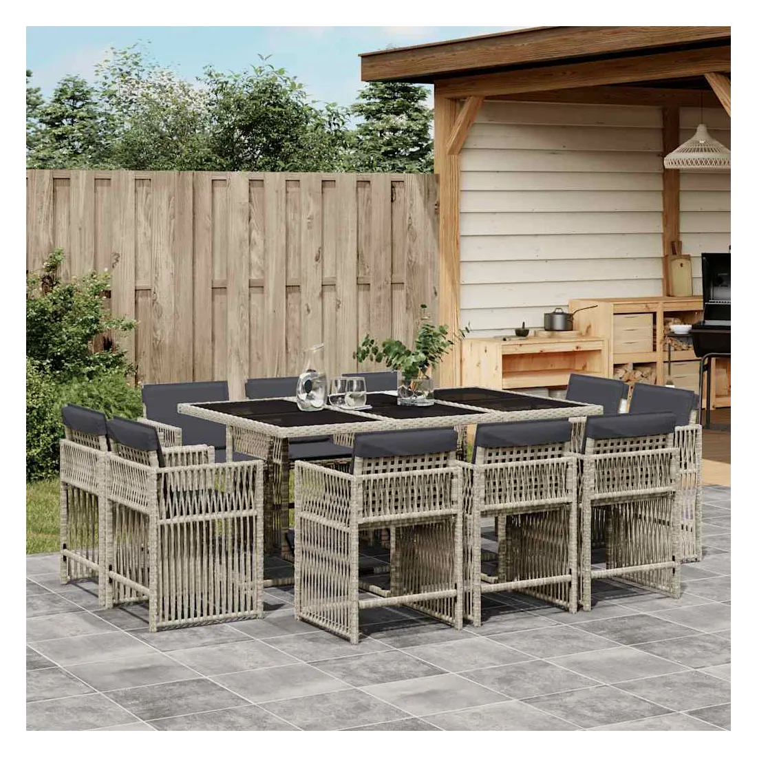 Cet ensemble de salle à manger de jardin est un excellent choix pour les repas en plein air ou pour vous détendre dans le jardin, l'arrière-cour ou le patio. Matériau durable : la résine tressée, également connue sous le nom de poly rotin, est un matériau synthétique solide et nécessitant peu d'entretien qui ressemble au rotin naturel. Il est léger, facile à nettoyer et couramment utilisé pour les meubles d'extérieur en raison de sa durabilité et de ses propriétés de résistance aux intempéries.Rangement compact : ces chaises sont dotées d'un dossier rabattable, ce qui permet de les ranger facilement sous la table. Une fois pliées, elles se rangent parfaitement sous la table, formant un cube peu encombrant.Expérience d'assise confortable : ce mobilier d'extérieur, doté de coussins épais, offre une expérience d'assise confortable.Housse amovible et lavable : ces coussins de siège sont dotés de housses amovibles pour un lavage et un entretien faciles. Les housses de coussin ont un rabat à l'arrière pour une fixation facile aux dossiers.Dessus en verre : le dessus de la table d'extérieur est fabriqué en verre trempé solide et durable, ce qui le rend facile à nettoyer avec un chiffon humide et ajoute une touche d'élégance à votre espace extérieur. Bon à savoir :Pour que vos meubles d'extérieur restent beaux, nous vous recommandons de les protéger avec une housse imperméable.