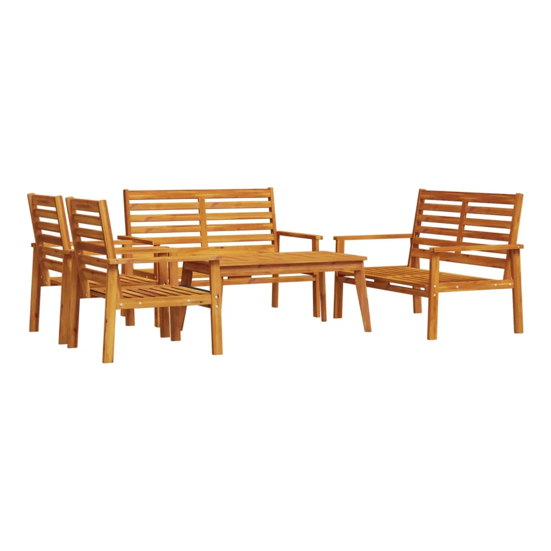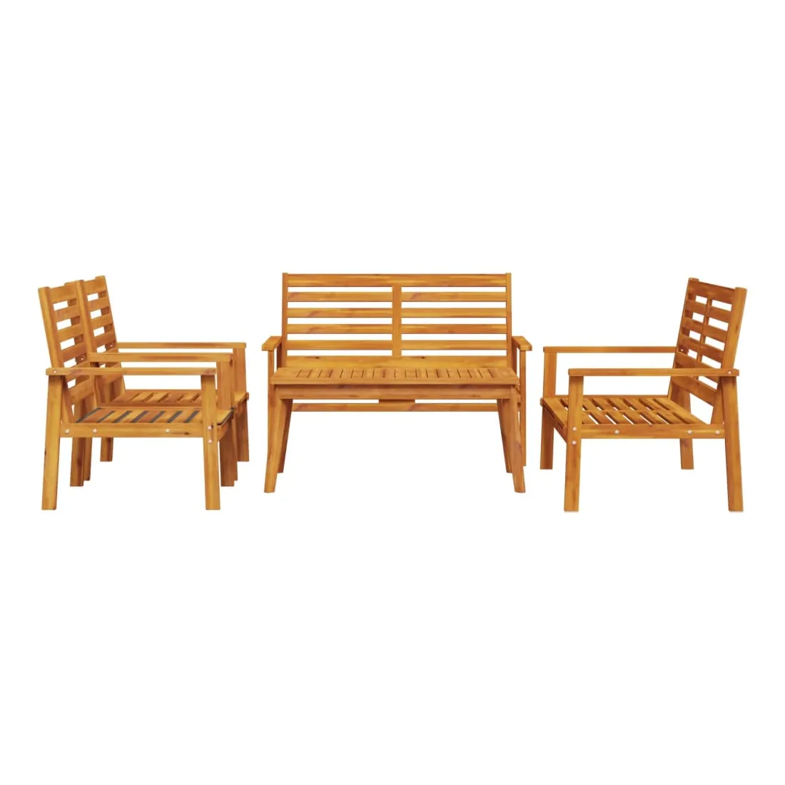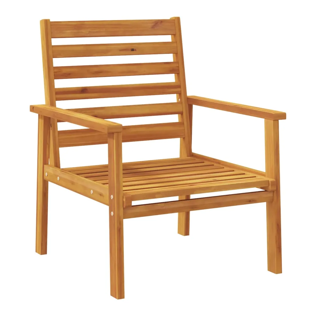 Cet ensemble de salon de jardin en bois a un design élégant et constitue un excellent choix pour vous détendre et profiter du jardin ou du patio. Bois d'acacia massif : l'ensemble de salon d'extérieur est fabriqué en bois d'acacia massif pour plus de robustesse et de stabilité. Le bois d'acacia solide est un beau matériau naturel. Le bois d'acacia a de beaux grains de bois qui rendent chaque meuble unique et légèrement différent les uns des autres.Expérience d'assise confortable : doté d'accoudoirs et d'un dossier, le salon de jardin vous offre un confort optimal.Dessus stable et facile à nettoyer : cette table de jardin a un dessus en bois d'acacia robuste, durable et facile à nettoyer avec un chiffon humide.Nombreuses applications : le siège de jardin est parfait pour tout porche avant, patio, arrière-cour, pelouse, jardin, etc. Bon à savoir :Pour que vos meubles d'extérieur restent beaux, nous vous recommandons de les protéger avec une housse imperméable.