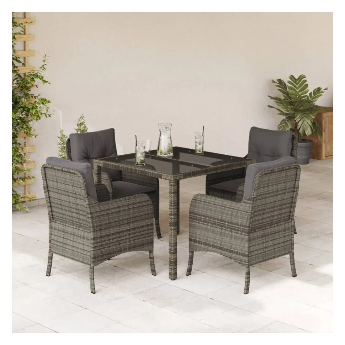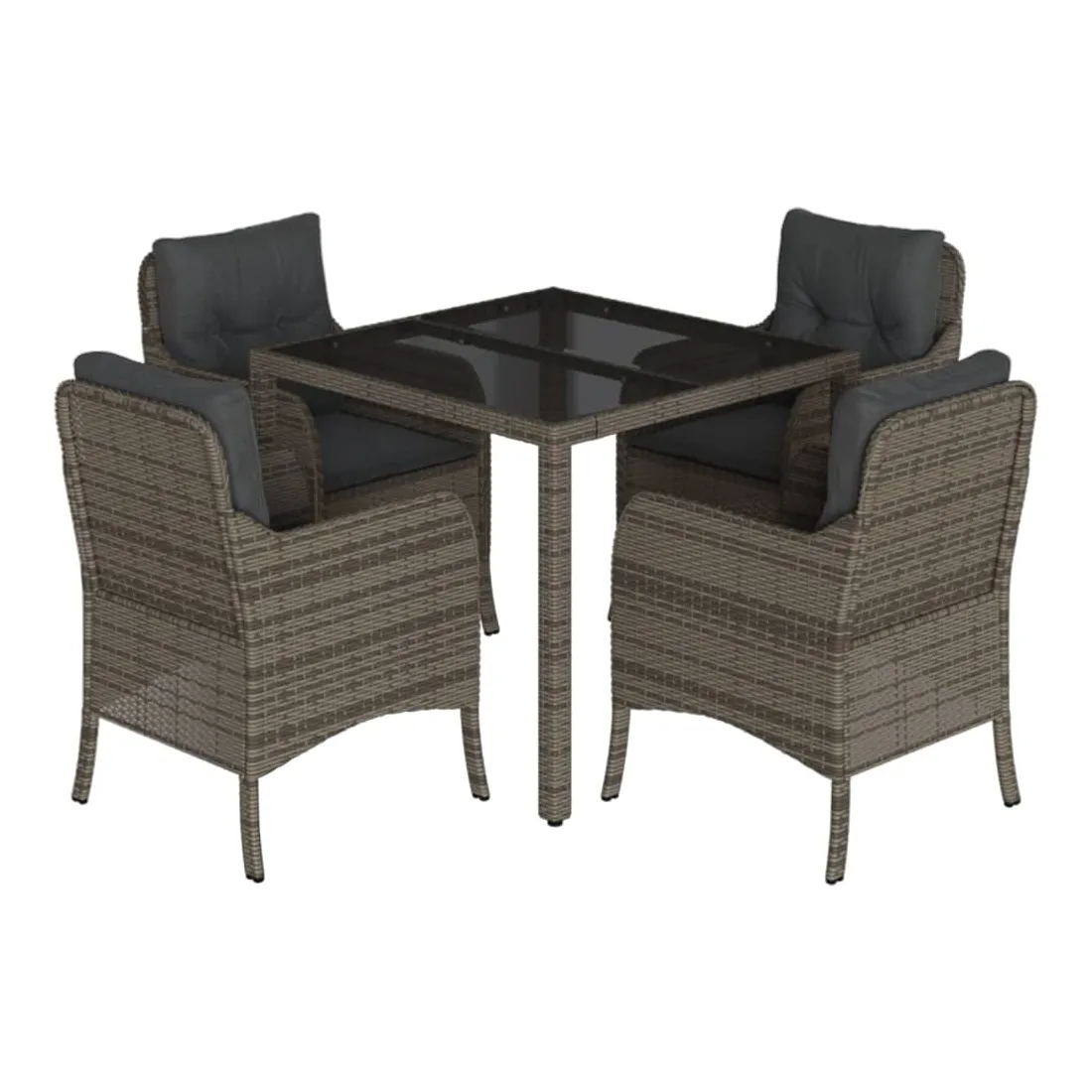 vidaXLCet ensemble de salle à manger de jardin est un excellent choix pour les repas en plein air ou pour vous détendre dans le jardin, l'arrière-cour ou le patio. Matériau durable : la résine tressée, également connue sous le nom de poly rotin, est un matériau synthétique solide et nécessitant peu d'entretien qui ressemble au rotin naturel. Il est léger, facile à nettoyer et couramment utilisé pour les meubles d'extérieur en raison de sa durabilité et de ses propriétés de résistance aux intempéries.Expérience d'assise confortable : ce mobilier d'extérieur, doté de coussins épais, offre une expérience d'assise confortable.Housse amovible et lavable : ces coussins de siège sont dotés de housses amovibles pour un lavage et un entretien faciles. Les housses de coussin de chaise ont un rabat à l'arrière pour une fixation facile aux chaises.Dessus en verre : le dessus de la table d'extérieur est fabriqué en verre trempé solide et durable, ce qui le rend facile à nettoyer avec un chiffon humide et ajoute une touche d'élégance à votre espace extérieur.Cadre robuste et stable : le cadre en acier enduit de poudre assure la solidité et la stabilité du meuble de jardin pour une utilisation quotidienne à l'extérieur. Bon à savoir :Pour que vos meubles d'extérieur restent beaux, nous vous recommandons de les protéger avec une housse imperméable.