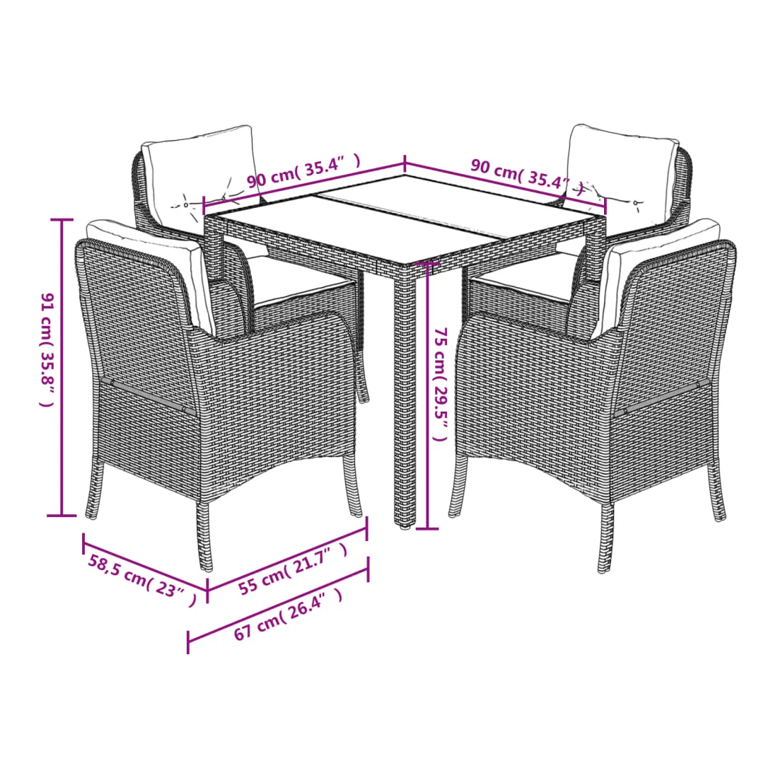 - Dimensions : 90 x 90 x 75 cm (L x l x H)