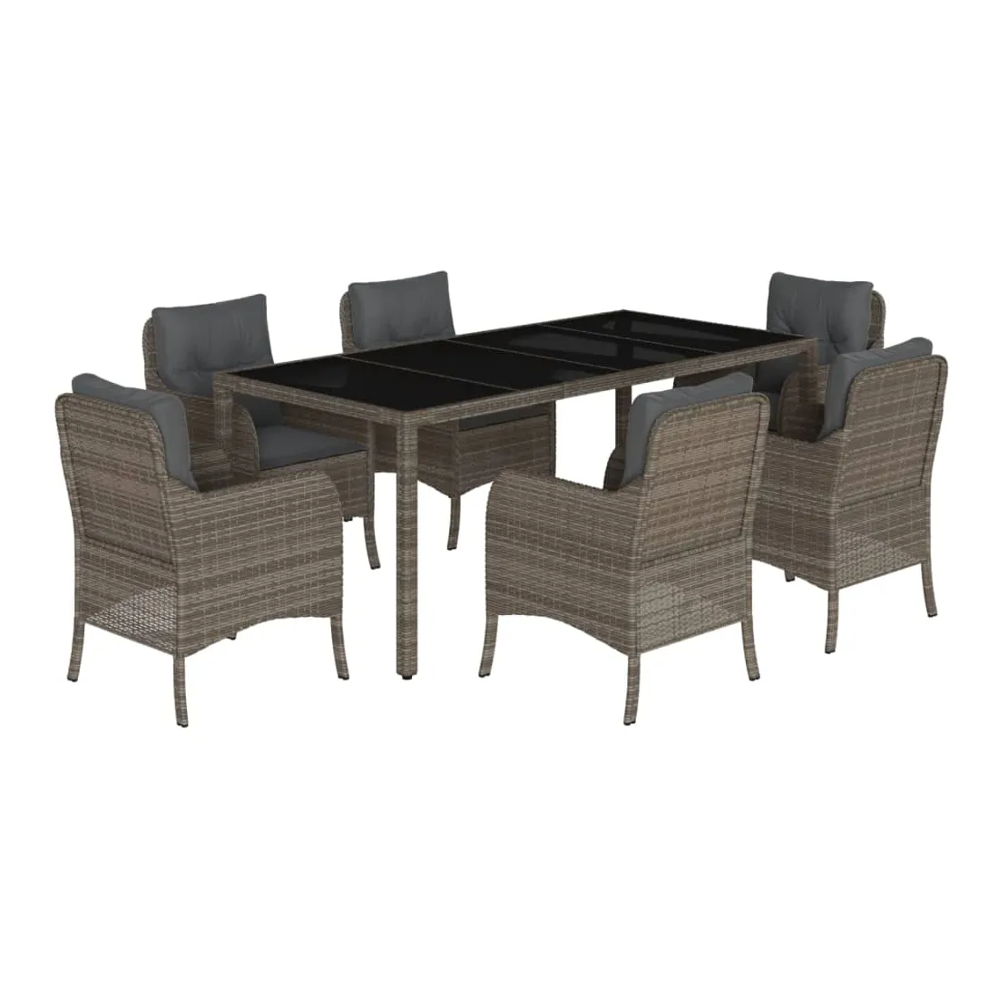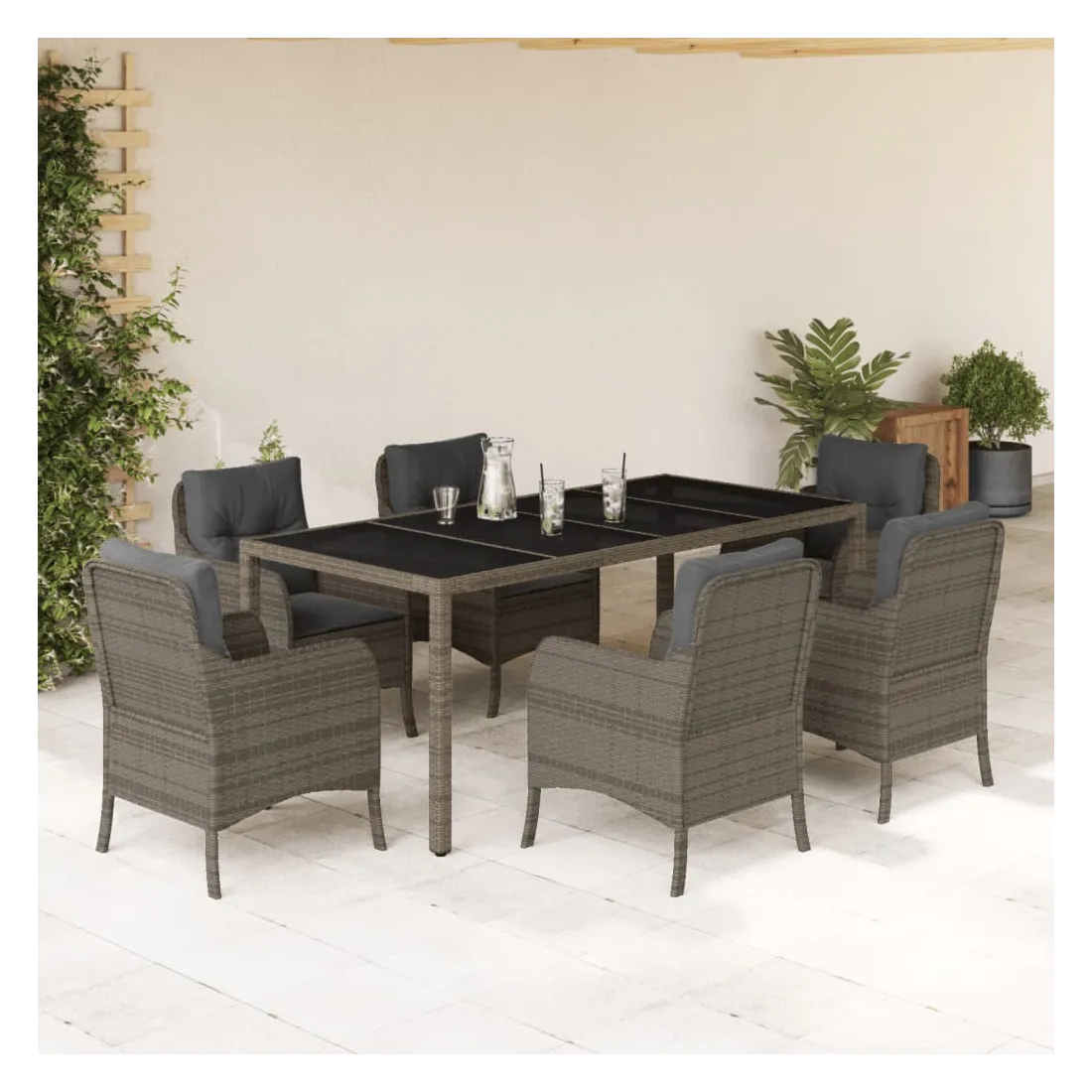 Cet ensemble de salle à manger de jardin est un excellent choix pour les repas en plein air ou pour vous détendre dans le jardin, l'arrière-cour ou le patio. Matériau durable : la résine tressée, également connue sous le nom de poly rotin, est un matériau synthétique solide et nécessitant peu d'entretien qui ressemble au rotin naturel. Il est léger, facile à nettoyer et couramment utilisé pour les meubles d'extérieur en raison de sa durabilité et de ses propriétés de résistance aux intempéries.Expérience d'assise confortable : ce mobilier d'extérieur, doté de coussins épais, offre une expérience d'assise confortable.Housse amovible et lavable : ces coussins de siège sont dotés de housses amovibles pour un lavage et un entretien faciles. Les housses de coussin de chaise ont un rabat à l'arrière pour une fixation facile aux chaises.Dessus en verre : le dessus de la table d'extérieur est fabriqué en verre trempé solide et durable, ce qui le rend facile à nettoyer avec un chiffon humide et ajoute une touche d'élégance à votre espace extérieur.Cadre robuste et stable : le cadre en acier enduit de poudre assure la solidité et la stabilité du meuble de jardin pour une utilisation quotidienne à l'extérieur. Bon à savoir :Pour que vos meubles d'extérieur restent beaux, nous vous recommandons de les protéger avec une housse imperméable.