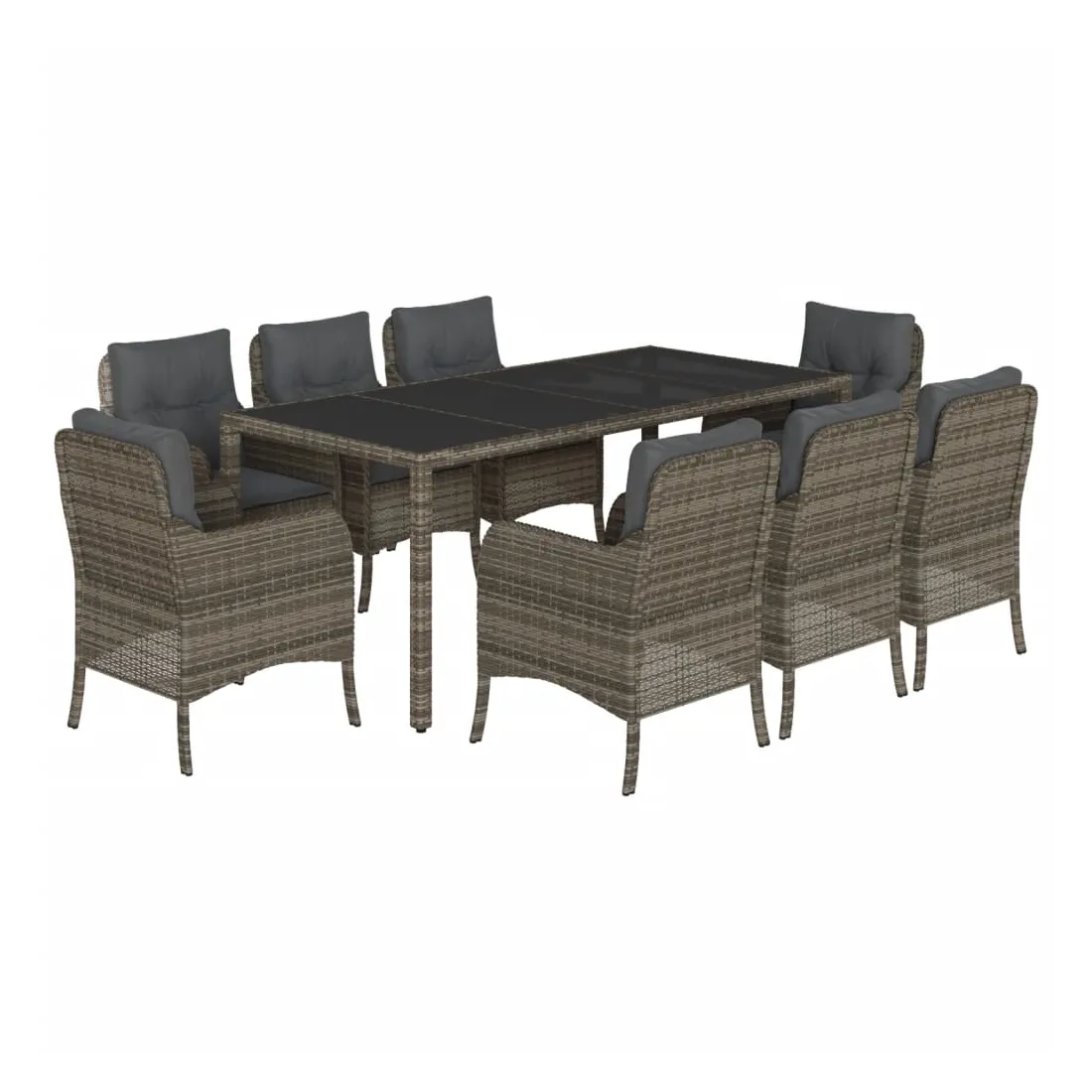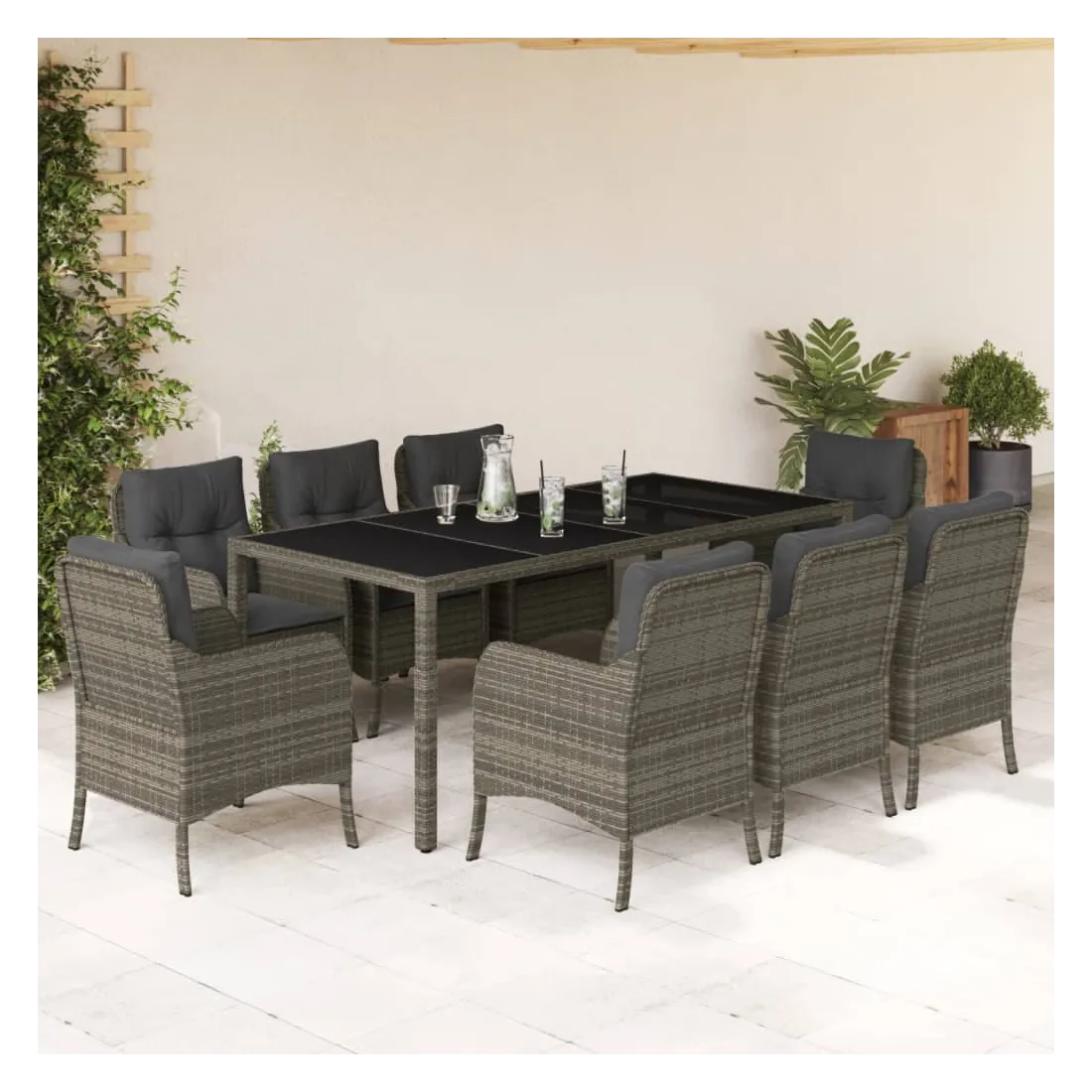 Cet ensemble de salle à manger de jardin est un excellent choix pour les repas en plein air ou pour vous détendre dans le jardin, l'arrière-cour ou le patio. Matériau durable : la résine tressée, également connue sous le nom de poly rotin, est un matériau synthétique solide et nécessitant peu d'entretien qui ressemble au rotin naturel. Il est léger, facile à nettoyer et couramment utilisé pour les meubles d'extérieur en raison de sa durabilité et de ses propriétés de résistance aux intempéries.Expérience d'assise confortable : ce mobilier d'extérieur, doté de coussins épais, offre une expérience d'assise confortable.Housse amovible et lavable : ces coussins de siège sont dotés de housses amovibles pour un lavage et un entretien faciles. Les housses de coussin de chaise ont un rabat à l'arrière pour une fixation facile aux chaises.Dessus en verre : le dessus de la table d'extérieur est fabriqué en verre trempé solide et durable, ce qui le rend facile à nettoyer avec un chiffon humide et ajoute une touche d'élégance à votre espace extérieur.Cadre robuste et stable : le cadre en acier enduit de poudre assure la solidité et la stabilité du meuble de jardin pour une utilisation quotidienne à l'extérieur. Bon à savoir :Pour que vos meubles d'extérieur restent beaux, nous vous recommandons de les protéger avec une housse imperméable.