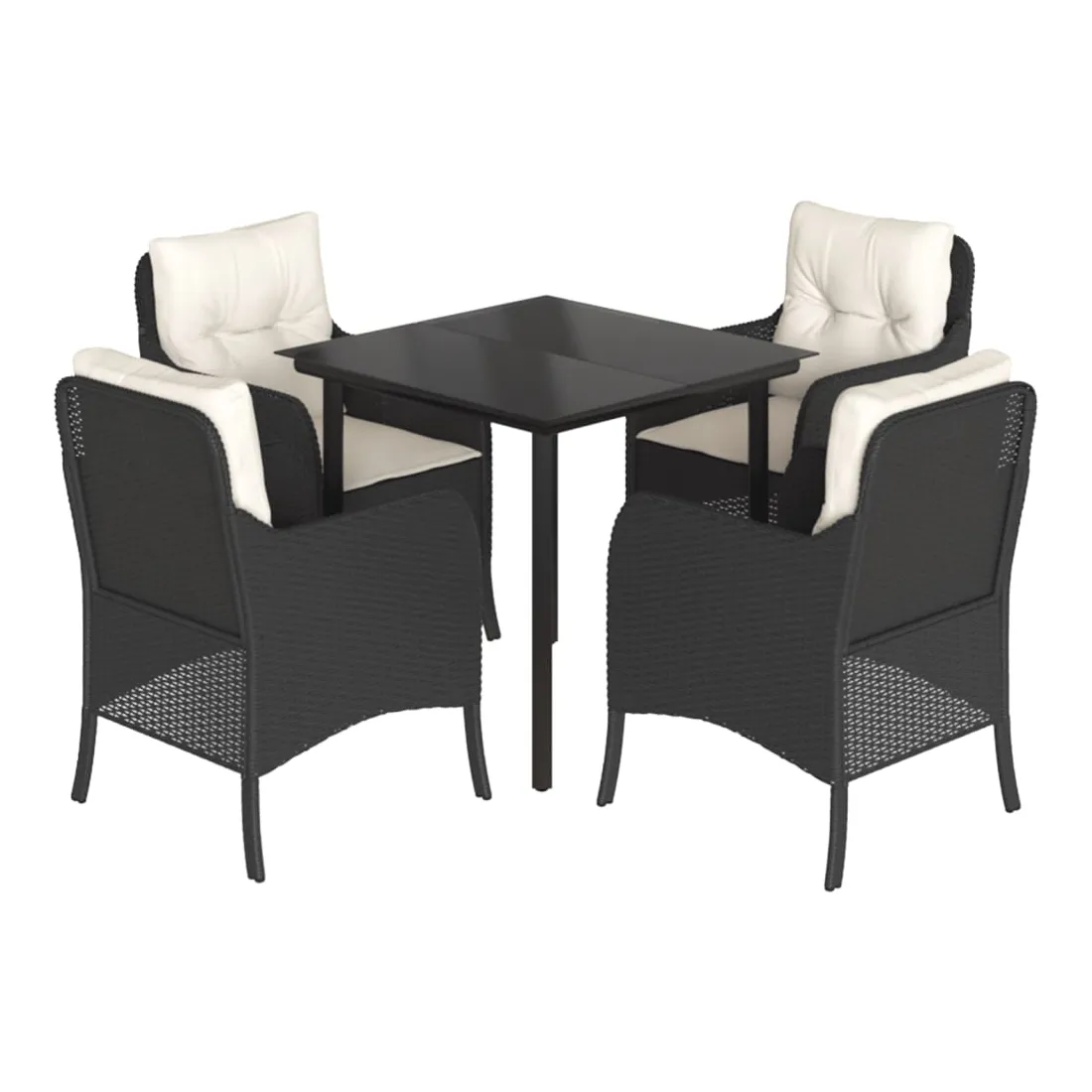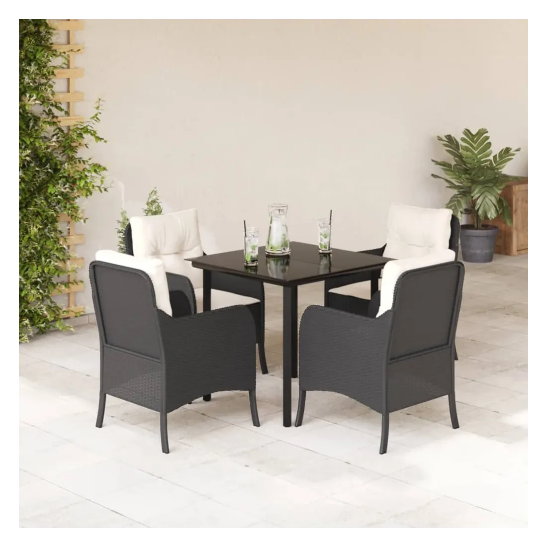 Cet ensemble de salle à manger de jardin est un excellent choix pour les repas en plein air ou pour vous détendre dans le jardin, l'arrière-cour ou le patio. Matériau durable : la résine tressée, également connue sous le nom de poly rotin, est un matériau synthétique solide et nécessitant peu d'entretien qui ressemble au rotin naturel. Il est léger, facile à nettoyer et couramment utilisé pour les meubles d'extérieur en raison de sa durabilité et de ses propriétés de résistance aux intempéries.Expérience d'assise confortable : ce mobilier d'extérieur, doté de coussins épais, offre une expérience d'assise confortable.Housse amovible et lavable : ces coussins de siège sont dotés de housses amovibles pour un lavage et un entretien faciles.Dessus en verre : le dessus de la table d'extérieur est fabriqué en verre trempé solide et durable, ce qui le rend facile à nettoyer avec un chiffon humide et ajoute une touche d'élégance à votre espace extérieur.Cadre robuste et stable : le cadre en acier enduit de poudre assure la solidité et la stabilité du meuble de jardin pour une utilisation quotidienne à l'extérieur. Bon à savoir :Pour que vos meubles d'extérieur restent beaux, nous vous recommandons de les protéger avec une housse imperméable.