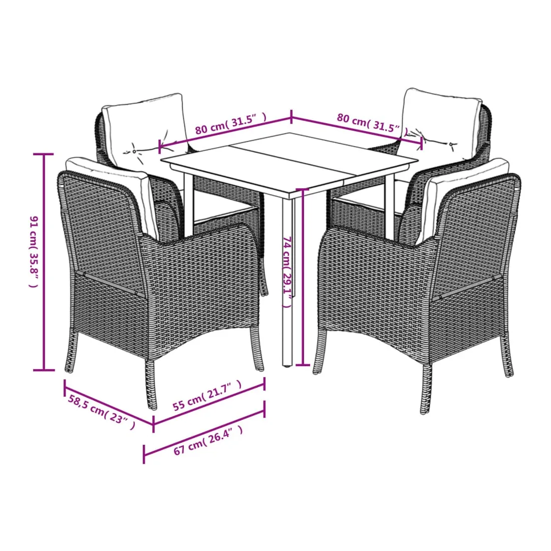 - Dimensions : 80 x 80 x 74 cm (L x l x H)